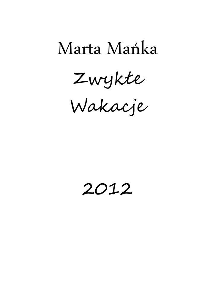 Marta Mańka Zwykłe Wakacje 2012 Zaczęły się wakacje. Dla uczniów to bardzo radosny moment. Większość dzieci gdzieś wyjeżdża, ja zostaje w kraju. Pod koniec czerwca przyjeżdża do nas cała rodzina: wujek i ciocia z Niemiec, moje kuzynki Zosia i Gosia, pięciu starszych kuzynów: Piotrek, Tomek, Sebastian, Bartosz i Wojtek, babcia i dziadek ze strony Taty z Szczecina i ze strony Mamy z Włoch oraz najmłodszy członek rodziny Franczeska. Franczeska jest aniołkiem (do pewnego czasu). Z rodziną co roku zwiedzamy inne miasto. W tym roku padło na Kraków. Nie cieszę się, według mnie, to będą najgorsze wakacje w życiu. Rodzice już od stycznia przygotowują „Plan dnia”, czyli miejsca, które mamy zwiedzić. Zwiedzanie zaczęło się od Krakowskiego Rynku. -Agatko, gdzie masz ten nowy aparat?- spytała mnie mama. -Mamo, przecież dałam ci go w tramwaju – odpowiedziałam. - Och, Marek! Zgubiliśmy już plecak, bilety a teraz aparat! – krzyknęła mama. -Mariola, nie denerwuj się.., co tam aparat – starał się pocieszyć mamę tata. -Beh, hai sollevato una Bella figlia! – powiedział mój dziadek, (po włosku) z pretensjami do babci, co miało znaczyć : No, piękną córkę sobie wychowałaś! - Dziadku..! – krzyknął Sebastian, po czym przerwał mu Bartek. -…Nie przeszkadzaj im! Po pierwsze na pewno się kłócą, a po drugie ni w ząb nie umiesz włoskiego, a oni ni w ząb polskiego. - Cisza! ...Dziadku popełniasz bardzo poważny błąd, jest to naukowo potwierdzone że ludzie zestresowani, i ci, którzy mają bardzo dużo na głowie szybciej się denerwują oraz są roztrzepani. Tak np. nasza ciocia, kobieta jak trzeba, ale jest bardzo przemęczona z powodu dzieci, pracy… i nie daje rady nad wszystkim zapanować. To nie jest wina babci, tylko przemęczenia. - Nagadałeś się już! – powiedział zdenerwowany Piotrek. -Quello che il ragozzo mi ha detto? – pytał się dziadek, babci : Co te smarkacze mówią do mnie? - Non lo so, ma probabilmente non parlale di chi ha ot tenuto miglior regalo per li Natale - powiedziała babcia . Nie wiem, ale chyba mówią o nie najlepszym prezencie, który dostali na Boże Narodzenie. -I co, nie zrozumieli cię!- powiedział dumny Bartek -Ile razy mam powtarzać ZAMILCZ!!!- powiedział Sebastian czerwieniejąc się ze złości. -Jak się odnosisz do starszego brata!- dodał Tomek. - A ty nie jesteś lepszy, ośle!- powiedział Sebastian - Mała dynia się wymądrza! – dopiekł Wojtek. - ..I jest mądrzejsza od ciebie pajacu! O mało nie doszło by do bójki, gdyby nie przyszła Gosia. - Chłopcy, co to ma znaczyć?!…. naprawdę cechuje was brak kultury. - A ty się nie wtrącaj! – rzekł Piotrek - Kto się zacznie bić, ten zgniłe jajo! – powiedziała Franczeska - I jeszcze ta mała… - Chłopcy naprawdę, robicie nam siarę! Poza tym wszyscy się na was patrzą. Postanowiliśmy więc opuścić Rynek i zmierzaliśmy w kierunku zamku „Wawel”. - Ega, a czy tu mieszkały księżniczki? – spytała mnie Franczeska. - Pewnie tak, ale „Hanna Montana” księżniczka popu pewnie nie. Zaczęło się zwiedzanie, było okropnie nudne… wszystkim się podobało z wyjątkiem mnie! Wszystkie komnaty, grobowce itp. nudziły mnie, chciałam już siedzieć w domu niż tu być. Wreszcie nadszedł koniec wycieczki, została nam tylko jedna atrakcja, czyli Smocza Jama. Wszystko byłoby super, gdybyśmy nie zgubili rodziców, dziewczyny nie zaczęłyby ich szukać, chłopcy nie poszliby do zamkowego ogrodu, a ja nie zostałabym z Franczeską! Wszystko zaczęło się walić, nawet nie miałam komórki, żeby do kogokolwiek zadzwonić i jeszcze Franczeska… Weszliśmy do Smoczej Jamy. Wkrótce padł jeden wyraz „siku!” i miły dzień się skończył. Byłoby super, gdybyśmy nie siedzieli tu z samymi Włoszkami! Nie umiałam znaleźć toalety, więc skręciliśmy w mały korytarzyk (tak z resztą nam się wydawało), w którym nie było żywej duszy. Franczeska zrobiła to co trzeba i zaczęło ją fascynować wszystko, co się tu znajdywało (mnie z wyjątkiem też). Zaczęliśmy wchodzić głębiej i oddalać się od grupy, myśleliśmy, że to dalsza część atrakcji, ale tak nie było. Piękne skały, jeziora i wszystko to, co mogło się znaleźć w jaskini, było bajeczne. Błąkaliśmy się tak ponad godzinę, aż wreszcie usiedliśmy na jakimś kamieniu. Franczeska już zasypiała na moich kolanach, ja musiałam zachować zimną krew. Siedzieliśmy, siedzieliśmy… a ja powoli zaczęłam się martwić, nigdzie nie było widać wyjścia i robiło się coraz zimniej. Nagle coś zaczęło się trząść, łamać, nie wiedziałam, co to jest! Szybko wzięłam Franczeskę na ręce i schowałam się za kamieniem, na którym siedzieliśmy. Jednakże kamień zaczął pękać i coś z niego wychodziło. Zaczęłam panikować. (Wyobraździcie sobie) wylazł z niego jakiś wielki jaszczur. Nie szedł w naszą stronę, lecz w kierunku jaskiniowego jeziora. Zastanawiałam się, skąd on się wziął. Przez chwilę straciliśmy go z oczu. I wtedy powiedziałam do Franczeski: - Franczesko, siedź tutaj cichuteńko jak myszka pod miotłą i nie wychodź! Poszłam nad jezioro, byłam ciekawa co to jest. Skradałam się bardzo cicho i ostrożnie. Wydawało mi się, że to najważniejsza chwila w moim życiu. Serce zaczęło bić jak szalone, kryłam je ręką z obawy, aby jaszczur go nie usłyszał. Zaczaiłam się nieopodal, parę metrów od ciała jaszczura. Przykucnęłam za kamieniem i przyglądałam się mu. Byłam nim wręcz oczarowana. Nie pił wody tak jak my językiem, lecz ją wdychał. Nagle jednak usłyszał hałas dochodzący z mojej strony i obrócił się w moim kierunku. Zaczęłam powtarzać „ I po co nam były te rodzinne wakacje!” Zza rogu zaczęły na mnie patrzeć dwa oczęta jaszczura, był cały zielony i śliski. Najbardziej jednak zdziwiła mnie jedna rzecz, mianowicie, że to nie była ja