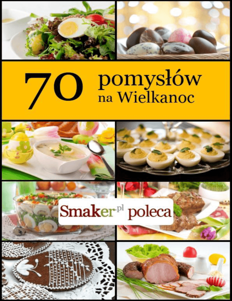 Smaker.pl serwis miłośników jedzenia. Znajdziesz w nim blisko 13 tysięcy przepisów użytkowników oraz kulinarne tematy specjalne pełne ciekawostek, ciekawe konkursy z atrakcyjnymi nagrodami i forum, gdzie porozmawiasz o gotowaniu i nie tylko. Ponadto na czacie spotkasz się ze znanymi kucharzami. Redaktor serwisu Smaker.pl: Joanna Jagodzińska Autor tekstów: Bartosz Rumieńczyk Projekt okładki: Joanna Jagodzińska Skład i łamanie: Joanna Jagodzińska Korekta: Katarzyna Denkowska Projekt okładki poradników: Agnieszka Śliwińska Autor tekstów poradnikowych: Anna Szozda Agnieszka Śliwińska i Zdjęcia do poradników: Anna Szozda Nadzór nad całością: Stanisław M. Stanuch Copyright Smaker.pl 2012 2 Spis treści Kolejne święta – kolejna książka ............................................................................................................. 6 Pisanki malowane, skrobane i wyklejane .................................................................................................7 Z kminkiem i dziczyzną ........................................................................................................................... 12 Jajo na twardo z kminkiem po staropolsku ....................................................................................... 13 Żury, barszcze, barszczyki .................................................................................................................. 14 Pasztet z zająca .................................................................................................................................. 16 Chrzan ................................................................................................................................................. 18 Zielona sałata z jajkiem....................................................................................................................... 19 Mazurek ............................................................................................................................................. 20 Adwokat ............................................................................................................................................. 22 Na ludowo .............................................................................................................................................. 23 Jaja marmurkowe............................................................................................................................... 24 Żur ludowy.......................................................................................................................................... 25 Pasztet mięsny....................................................................................................................................26 Sałatka z jajek i brokułów ...................................................................................................................28 Chrzan ze śmietaną.............................................................................................................................29 Mazurek pomarańczowy ................................................................................................................... 30 Ajerkoniak .......................................................................................................................................... 32 Grzybowo i owocowo ............................................................................................................................. 33 Jaja faszerowane wędzonym łososiem ..............................................................................................34 Żur z grzybami .................................................................................................................................... 35 Pasztet drobiowy .............................................................................................................................. 36 Sałatka z jajek i awokado .................................................................................................................. 38 Chrzan z jabłkiem............................................................................................................................... 39 Mazurek daktylowy ........................................................................................................................... 40 Eierpunsch .......................................................................................................................................... 41 Po francusku, polsku i litewsku .............................................................................................................. 42 Jaja w galarecie ..................................................................................................................................43 Żur na kapuście.................................................................................................................................. 44 Pasztet francuski ................................................................................................................................45 Sałatka z jajek i krewetek .................................................................................................................. 46 Chrzan po litewsku .............................................................................................................................47 Baba szafranowa ............................................................................................................................... 48 3 Eggnog ............................................................................................................................................... 50 Tradycyjnie i nowocześnie ...................................................................................................................... 51 Jajo w sosie czosnkowo-orzechowym ........................................