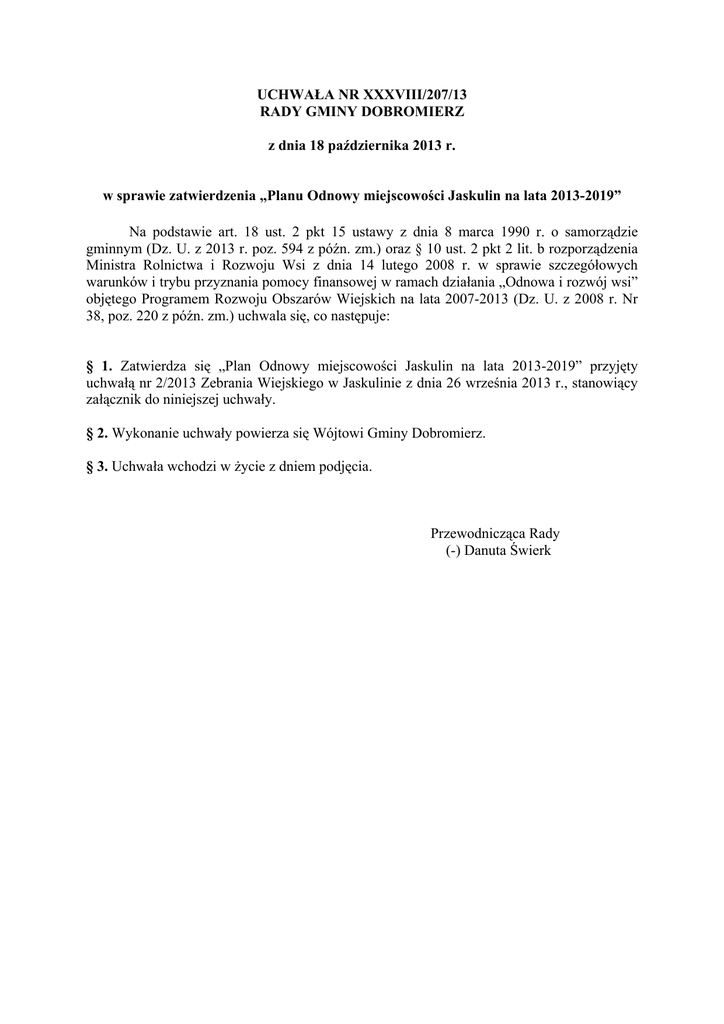 UCHWAŁA NR XXXVIII/207/13 RADY GMINY DOBROMIERZ z dnia