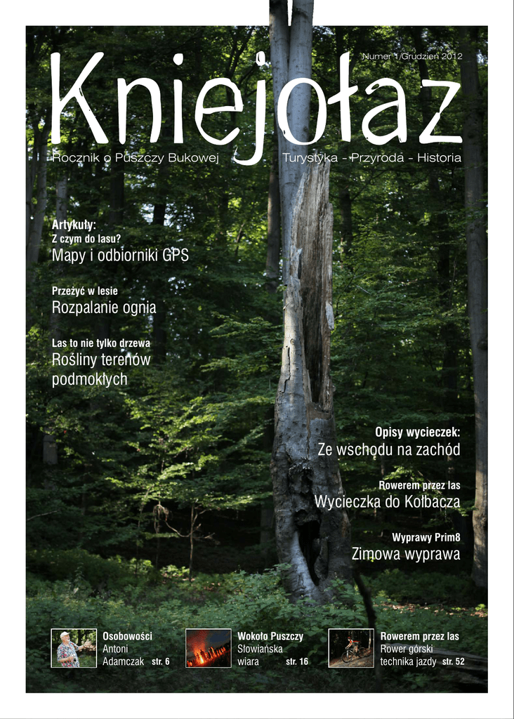 Numer 1/Grudzień 2012 Kniejołaz Rocznik o Puszczy Bukowej Turystyka - Przyroda - Historia Artykuły: Z czym do lasu? Mapy i odbiorniki GPS Przeżyć w lesie Rozpalanie ognia Las to nie tylko drzewa Rośliny terenów podmokłych Opisy wycieczek: Ze wschodu na zachód Rowerem przez las Wycieczka do Kołbacza Wyprawy Prim8 Zimowa wyprawa Osobowości Antoni Adamczak str. 6 Wokoło Puszczy Słowiańska str. 16 wiara Rowerem przez las Rower górski technika jazdy str. 52 LAS TO NIE TYLKO DRZEWA Wstęp Spis treści Witam Was gorąco, pomimo mało letniej temperatury za oknem. Nastała jesień, przyroda zapada powoli w zimowy sen, a ja zachęcam do lektury Kniejołaza, na łamach którego podsumowujemy kończący się rok i wydarzenia w Puszczy Bukowej. W numerze znajdziecie teksty związane z Knieją np. opisy wycieczek i ciekawych miejsc, których historię warto poznać. Poza tym piszemy o sprawach luźno związanych z podszczecińskim lasem, ale ciekawych, a czasem przydatnych dla każdego turysty jak rozpalanie ognia czy nawigowanie przy pomocy GPS. Dużą gratką jest wywiad z Antonim Adamczakiem z cyklu Osobowości Puszczy. Poza wspomnieniami sprzed 50 lat pokazujemy archiwalne zdjęcia Pana Antoniego. Wiele z pokazanych na nich obiektów niestety już nie istnieje lub zostały zmienione nie do poznania. W 2012 roku miało miejsce kilka ciekawych wydarzeń z punktu widzenia przyrodników i historyków. Jednym była wizja lokalna przedstawicieli Regionalnej Dyrekcji Ochrony Środowiska, Regionalnej Dyrekcji Lasów Państwowych i Klubu Kniejołaza w Puszczy Bukowej. Drugim ważnym wydarzeniem była decyzja Rady Ochrony Zabytków o wpisaniu obiektów małej architektury na listę zabytków. Chodzi tu głównie o kamienne mostki, drogi oraz mniejsze obiekty, jak kamienie graniczne i pomniki. Decyzja ta była ważna, gdyż te elementy krajobrazu Puszczy Bukowej szybko znikają i jeśli nie zostaną poddane ochronie i opiece mogą zniknąć bezpowrotnie. Z miejsca ruszyła także sprawa zniszczenia siedliska przyrodniczego w dolinie Chojnówki. Po kilku latach od zgłoszenia sprawy - czas najwyższy. Życzę wszystkim ciekawej lektury i do zobaczenia na szlaku w Bukowej Kniei. 4 Kronika Co wydarzyło się w 2012 roku? 6 Osobowości Puszczy Antoni Adamczak 12 Wycieczki po Puszczy Ze wschodu na zachód 14 Puszczańskie wsie Binowo 16 Wokoło Puszczy Rodzima słowiańska wiara 22 Puszcza w obiektywie Jezioro Glinna 24 Las to nie tylko drzewa Rośliny terenów podmokłych 26 Z czym do lasu? Odbiorniki GPS 34 Przeżyć w lesie Rozpalanie ognia 46 Leśne paragrafy Zakaz wjazdu do lasu Redakcja Redaktor naczelny, grafika i skład: Krzysztof Matysiak [email protected] Rowerem przez las 50 Wycieczka do Kołbacza 52 Rower górski - technika jazdy Redakcja: Robert Biegas Anna Bielecka Andrzej Ceranowski Paweł Herbut Dorota Markiewicz Mirosław Wacewicz Edward Zadorski Interwencja 54 Dolina Chojnówki 58 List otwarty i wizja lokalna Ilustracje: Roman Kurzawa Marcin Przydatek Okładka: Rezerwat przyrody „Źródliskowa Buczyna”. Fot. Krzysztof Matysiak 62 Legendy Święta góra 64 Wyprawy Prim8 Zimowa wyprawa www.bukowa.szczecin.pl 3 Kronika STYCZEŃ 15.01 - Wycieczka KK - Inwentaryzacja kamieni granicznych (morowców). Podczas wycieczki zmierzyliśmy, sfotografowaliśmy i nanieśliśmy na mapy wszystkie znane nam kamienie graniczne. Materiał ten pomocny był później przy zgłoszeniu kradzieży jednego z nich oraz przy prośbie o wpis na listę zabytków. 29.01 - Wycieczka KK - Sułtańska Woda. Zimowa wyprawa miała na celu weryfikację informacji z Leksykonu Lipniackiego w terenie. Trasa wiodła przez drogą Dobropolską, Spaloną Górę, Dolinę Sułtańskiej Wody w okolice Zamecznej Góry. LUTY 4.02 - Wycieczka KK - okolice Wzgórza Akademickiego. Wyprawa przy 20 stopniowym mrozie w poszukiwaniu tajemniczych sztolni pod Akademickim oraz wspinaczka pod szczecińską „Orlą Perć”, czyli 50 metrową skarpę wyrobiska dawnej kopalni kredy. 11.02 - VIII Zimowy Rajd Kniejołaza. Tematem przewodnim rajdu były duchy i demony. Liczne legendy powtarzane od wieków przez okoliczną ludność były inspiracją do wywołania ducha, który poprowadził uczestników przez ciemy las. Na szczęście przygotowane były pochodnie rozświetlające mrok. 26.02 - Kradzież kamienia granicznego (morowca). Kamień zabrano z okolic strzelnicy wojskowej. Sprawa została zgłoszona do prokuratury oraz odbyła się wizja lokalna z przedstawicielami Straży Leśnej i Nadleśnictwa Gryfino. 4 Kronika I Co wydarzyło się w 2012 roku? MARZEC 4.03 - Wycieczka KK - Królewskie Źródła. Trasa wiodła z Płoni, gdzie udało się nam zwiedzić zabytkowy kościółek, Doliną Leszczyńca, Szczucin do Zbójnego Traktu. Powrót doliną strumienia Bukowa Woda, przez uroczysko Królewskie Źródła w pobliżu którego odkryliśmy znaczne skupisko głazów. Największy z nich otrzymał nazwę Królewski Głaz, a skupisko mniejszych nazwane zostało Książęcymi. 11.03 - Wycieczka KK - Ukryty Głaz. Wycieczka w dolinę Utraty w poszukiwaniu Ukrytego Głazu, zatopionego częściowo w wodach strumienia. Po drodze natknęliśmy się na duży głaz nazwany Jelenim z powodu stada jeleni przechodzących obok. 24.03 - Wycieczka KK - Dąb Dziadek. Wyprawa na teren Wilekiego Moczaru gdzie stoi piękny, pomnikowy dąb Dziadek, duma Nadleśnictwa Gryfino. 30.03 - ujawnienie i zgłoszenie sprawy zaorania siedlisk przyrodniczych na terenie proponowanego rezerwatu "Węglino”. Brak reakcji RDOŚ na zgłoszenie było tematem listu otwartego do powyższego urzędu. KWIECIEŃ 14.04 - Wycieczka KK - Lwia Paszcza . Przyjęcie sprawozdania finansowego za 2011 rok. 28.04 - Pierwsza rocznica spotkania Miłośników Puszczy Bukowej, czyli powstania Klubu Kniejołaza. 29.04 - IX Wiosenny Rajd Kniejołaza. Tematem przewodnim Rajdu była woda. Trasa wiodła dolinami Rudzianki, Małej i Dużej Niedźwiedzianki, Słupiennicy, Leniwki i Chojnówki. Uczest