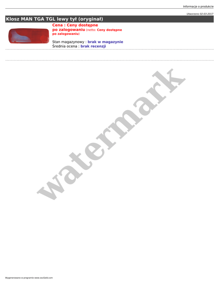 Informacje o produkcie Utworzono 02-03-2017 Klosz MAN TGA TGL lewy tył (oryginał) Cena : Ceny dostępne po zalogowaniu (netto: Ceny dostępne po zalogowaniu) w at er m ar k Stan magazynowy : brak w magazynie Średnia ocena : brak recenzji Wygenerowano w programie www.oscGold.com