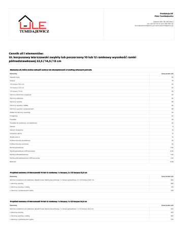 Cennik uli i elementów: UL korpusowy Warszawski zwykły lub