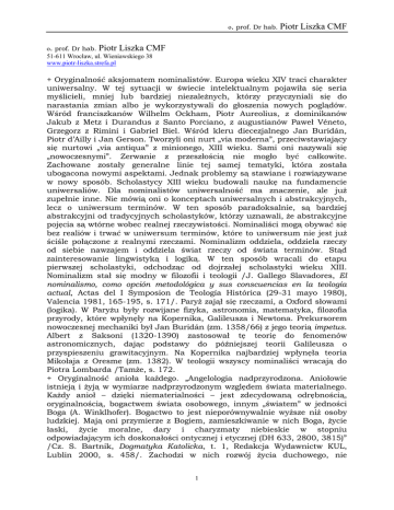 Mikołaja z Oresme (zm. 1382). W teologii wszyscy nominaliści wracają do