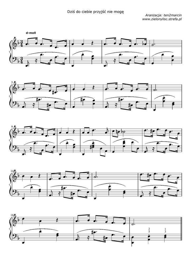 Dziś do ciebie przyjść nie mogę Aranżacja: ten2marcin www.zielonylisc.strefa.pl d-moll 43 43 5 9 14 18 2 5 1 3