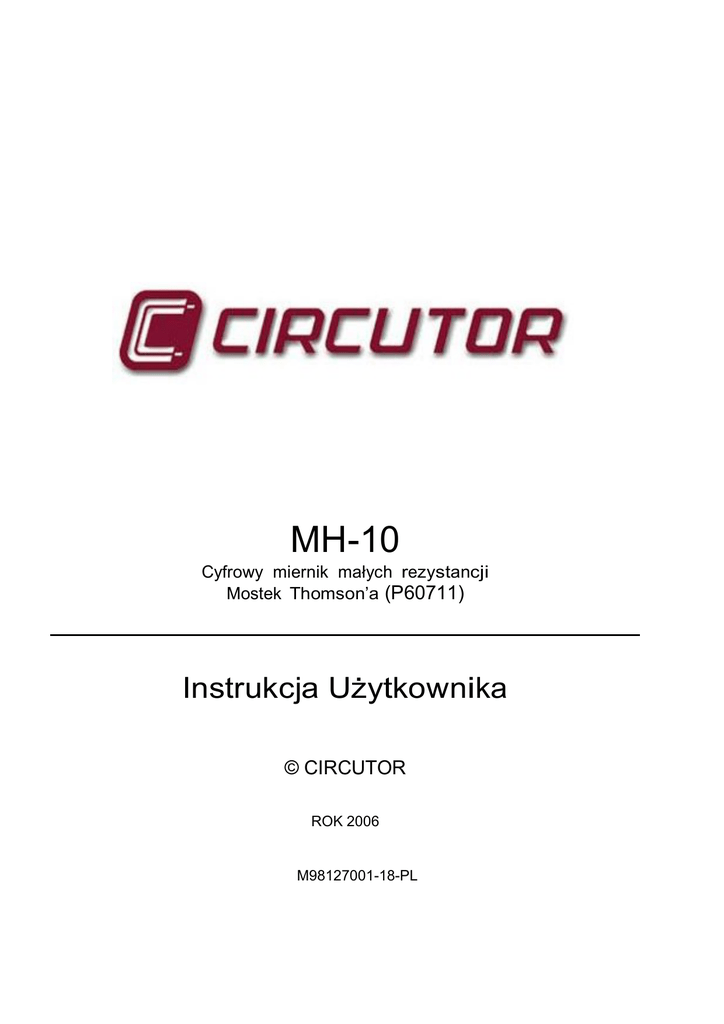 MH-10 Cyfrowy miernik małych rezystancji Mostek Thomson’a (P60711) Instrukcja Użytkownika © CIRCUTOR ROK 2006 M98127001-18-PL Miernik rezystancji MH-10 1. SPIS TREŚCI 1 2. WARUNKI BEZPIECZEŃSTWA 2 3. OPIS PRZYRZĄDU 3 4. PANEL CZOŁOWY 4 5. ZASILANIE SIECIOWE 5 6. POMIAR 5 7. KOMUNIKATY 6 8. DOKŁADNOŚĆ POMIARU 7 9. WEWNĘTRZNA BATERIA 9.1. Ładowanie wewnętrznej baterii 7 7 10. PORT RS-232 8 11. KONSERWACJA 8 12. WYMIANA BEZPIECZNIKA 8 13. SPECYFIKACJA TECHNICZNA 9 14. AKCESORIA 9 15. SERWIS 10 M98127001-18-PL Strona 2 Miernik rezystancji MH-10 2. WARUNKI BEZPIECZEŃSTWA • • • • • • • Miernik rezystancji MH-10 powinien być obsługiwany wyłącznie przez osoby posiadające podstawową wiedzę o technikach i zasadach przeprowadzania pomiarów elektrycznych. Mierzona rezystancja nie może być podłączona do innego niż mierrnik MH-10 źródła napięcia. Przed rozpoczęciem pomiarów należy sprawdzić czy napięcia zasilania miernika MH-10 mieści się w dopuszczalnym przedziale. Zalecane jest, aby pomiary przeprowadzać przy naładowanej wewnętrznej baterii. Niedopuszczalne jest rozpoczynanie pomiarów przy niepodłączonych przewodach oraz rozłączanie przewodów w czasie pomiarów. Zalecane jest stosowanie oryginalnych dostarczonych z miernikiem MH-10 kabli pomiarowych i przewody zasilania sieciowego. Miernik MH-10 nie posiada żadnych ukrytych elementów regulacyjnych i elementów wymagających wymiany lub konserwacji. Zdejmowanie obudowy w celu uzyskania dostępu do wnętrza miernika grozi kontaktem z niebezpiecznym dla zdrowia i zycia człowieka napięciem. Czyszczenie przyrządu powinno odbywać się przy odłączonym kablu zasilającym i wyłączonym mierniku. Powinno polegać na delikatnym przetarciu zewnętrznych elementów obudowy miękką szmatką nasączoną antystatycznym płynem myjącym bez dodatków ścierających. M98127001-18-PL Strona 3 Miernik rezystancji MH-10 3. OPIS PRZYRZĄDU Miernik małych rezystancji MH-10 jest przenośnym mikroomomierzem pracującym w układzie mostka Thomson’a, z automatycznym, sterowanym procesorem procesem równoważenia. Służy do dokładnego pomiaru małych rezystancji typowych dla bezpieczników przełączników, szyn i przewodów zasilających, uzwojeń transformatorów dużej mocy, rezystancji stykowych itp. Pomiar dokonywany jest prądem od 1 mA do 10 A zależnym od wybranego zakresu i pozycji potencjometru regulacyjnego. Przeznaczony jest do pracy w warunkach laboratoryjnych i obiektowych (na otwartym powietrzu). Podstawowe cechy miernika: • • • • • • Układ pomiarowy Kelvin’a (czteroprzewodowy). Cyfrowy alfanumeryczny wyświetlacz. Odczyt 4 cyfrowy. Zasilanie zewnętrznym napięciem lub z wbudowanej wewnętrznej baterii . Rozdzielczość pomiarów 1 µΩ. Maksymalna mierzona rezystancja 200 Ω. Wykorzystywany w mierniku MH-10 układ Kelvin’a z czterema zaciskami pomiarowymi minimalizuje wpływ rezystancji przewodów na dokładność pomiaru. Użytkownik, wykorzystując potencjometr regulacyjny, może ustawić żądany prąd wymuszany w mierzonej rezystancji. Na wyświetlaczu, w przejrzystej i intuicyjnej formie prezentowane są zarówno wyniki pomiarów jak i komunikaty i ostrzeżenia dla użytkownika. M98127001-18-PL Strona 4 Miernik rezystancji MH-10 4. PANEL CZOŁOWY 1. Gniazdo bezpiecznika zasilania 2. Gniazdo przewodu zasilania sieciowego 3. Gniazdo interfejsu RS-232 drukarki 4. Zacisk C1 (+) prądowy 5. Zacisk P1 (+) pomiarowy 6. Zacisk P2 (-) pomiarowy 7. Zacisk C2 (-) prądowy 8 Wyłącznik zasilania (włączenie/wyłączenie miernika) 9. Alfanumeryczny wyświetlacz 10. Wskaźnik (LED) włączenia miernika 11. Wskaźnik (LED) ładowania wewnętrznej baterii 12. Przełącznik zakresów pomiarowych 13. START Klawisz rozpoczęcia pomiarów 14. HOLD Klawisz wstrzymania ostatniego komunikatu na wyświetlaczu 15. STOP Klawisz zakończenia pomiarów 16. BATTERY Klawisz sprawdzenia stanu naładowania wewnętrznej baterii 17. Potencjometr regulacji prądu pomiarowego ( 10 ÷ 100 % wartości maksymalnej) M98127001-18-PL Strona 5 Miernik rezystancji MH-10 5. ZASILANIE SIECIOWE Miernik MH-10 produkowany jest w różnych wersjach zależnych od docelowego kraju (regionu geograficznego). Przy gnieździe zasilania sieciowego na panelu czołowym podana jest wartość nominalna napięcia zasilania (sieci). 6. POMIAR 1. Zaleca się podłączenie przewodów pomiarowych do miernika i mierzonej rezystancji przed włączeniem miernika MH-10. Przewody pomiarowe powinny być starannie i pewnie podłączone do miernika i mierzonej rezystancji. 2. Przełącznikiem zakresów wybrać żądany zakres pomiarowy rezystancji, a przy pomocy potencjometru regulacji prądu pomiarowego należy ustawić wartość prądu wymuszanego w układzie pomiarowym (w zakresie 10 ÷ 100%). 3. Podłączyć kabel zasilania sieciowego. W przypadku braku mozliwości zasilania z sieci MH-10 skorzysta z wewnętrznej baterii. 4. Włączyć miernik MH-10 (ON/OFF). Na wyświetlaczu pojawi się komunikat PRESS START potwierdzający gotowość miernika MH-10 do rozpoczęcia pomiaru. 5. Rozpocząć pomiar przez naciśnięcie klawisza START. Jeżeli na wyświetlaczu pojawi się komunikat LOW CURRENT należy potencjometrem regulacji prądu zwiększyć wartość prądu pomiarowego. Ustawioną wartość prądu (w procentach wartości maksymalnej właściwej dla wybranego zakresu pomiarowego) można odczytać na linijce widocznej w dolnej części wyświetlacza. Prąd pomiarowy nie może być mniejszy od 10% wartości maksymalnej. Im mniejszy prąd pomiarowy tym większy błąd pomiaru rezystancji. Klasa miernika MH-10 jest zachowana dla prądów pomiarowych większych od 80%. 6. Na wyświetlaczu będzie prezentowana zmierzona wartość rezystancji wraz z jednostkami Ω (omy), mΩ (milliomy) lub µΩ (mikroomy). W yświetlana wartość może być przez uzytkownika „zamrożona” klawiszem HOLD – ponowne naciśnięcie klawisza HOLD kasuje 