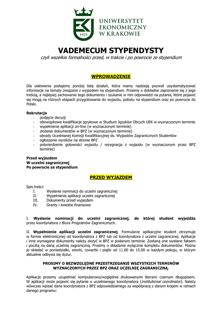 vademecum stypendysty - Uniwersytet Ekonomiczny w Krakowie