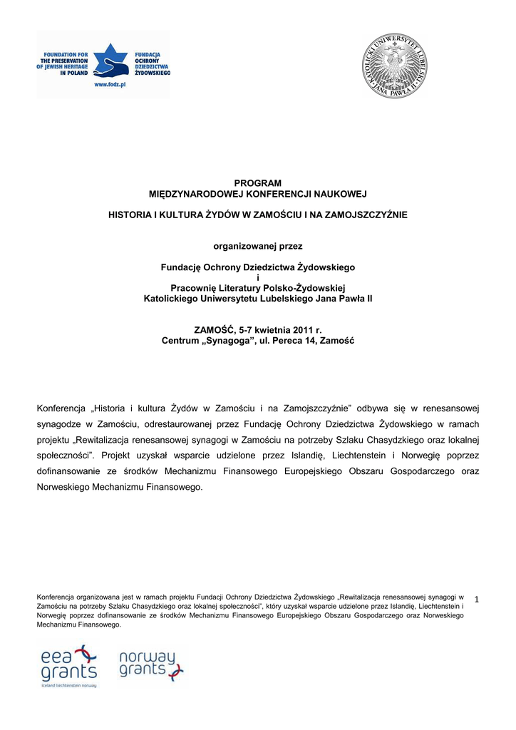 Program konferencji - Fundacja Ochrony Dziedzictwa Żydowskiego