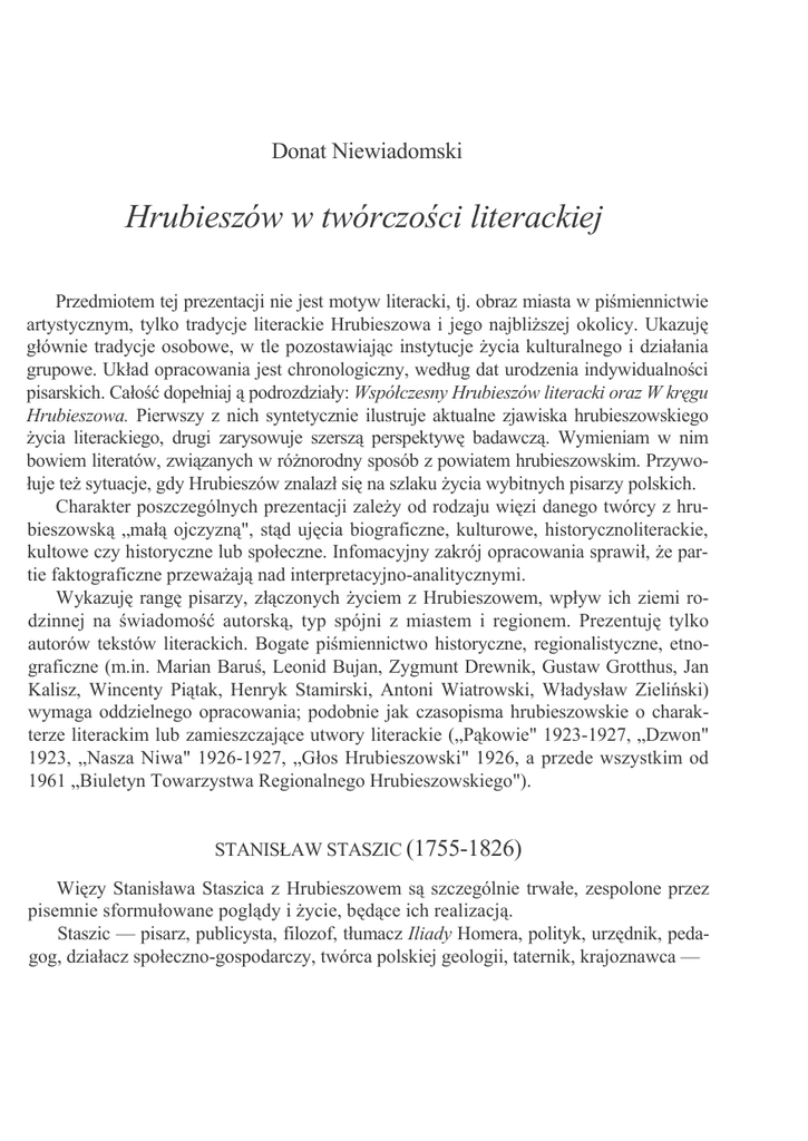 Donat Niewiadomski, Hrubieszów w twórczości literackiej