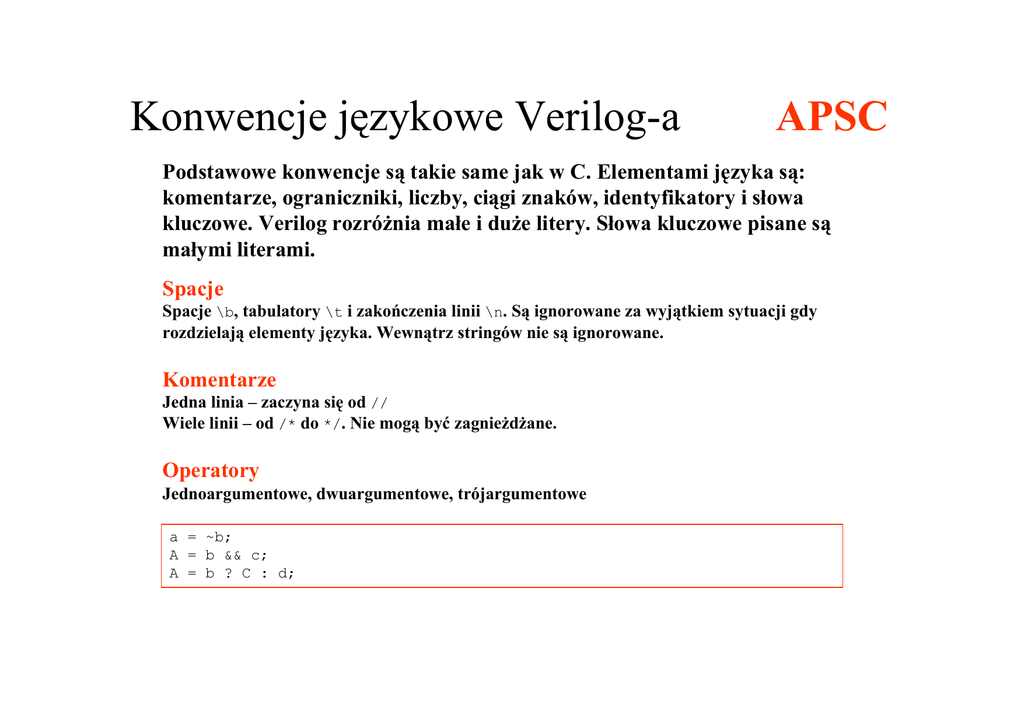 kluczowe. Verilog rozróżnia małe i duże litery. Słowa kluczowe pisane są