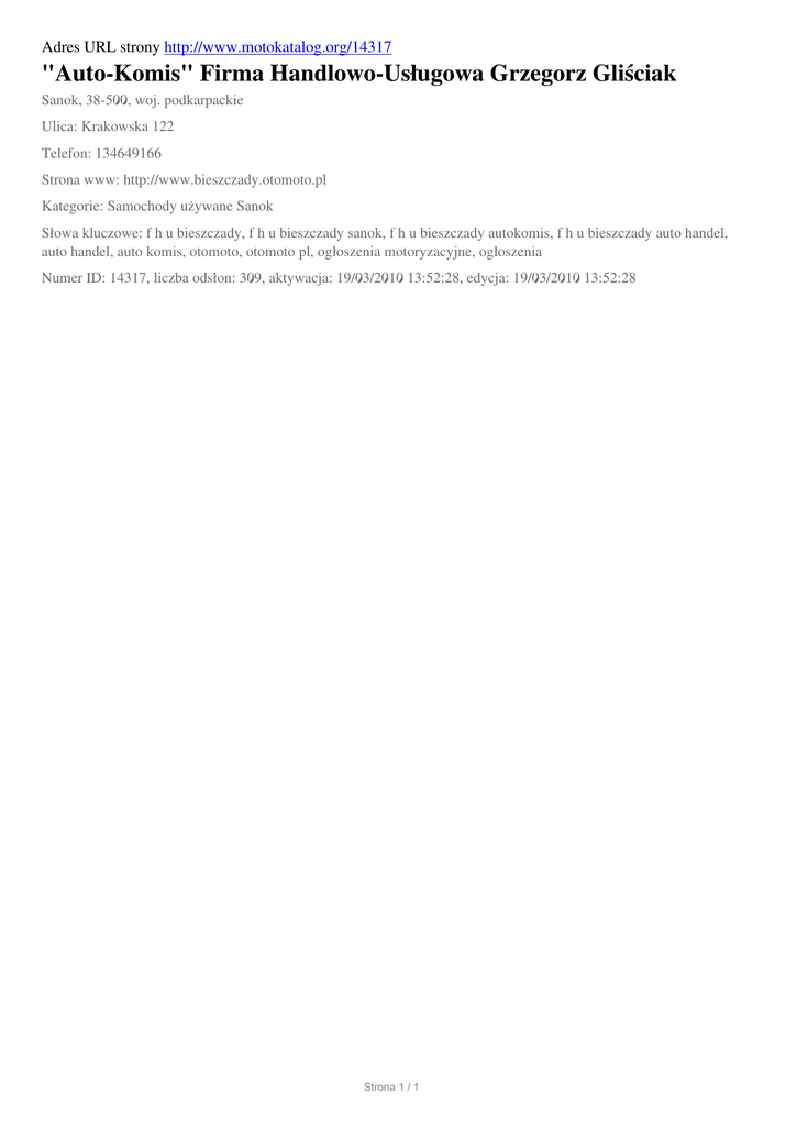 "Auto-Komis" Firma Handlowo-Uslugowa Grzegorz Glisciak, Sanok