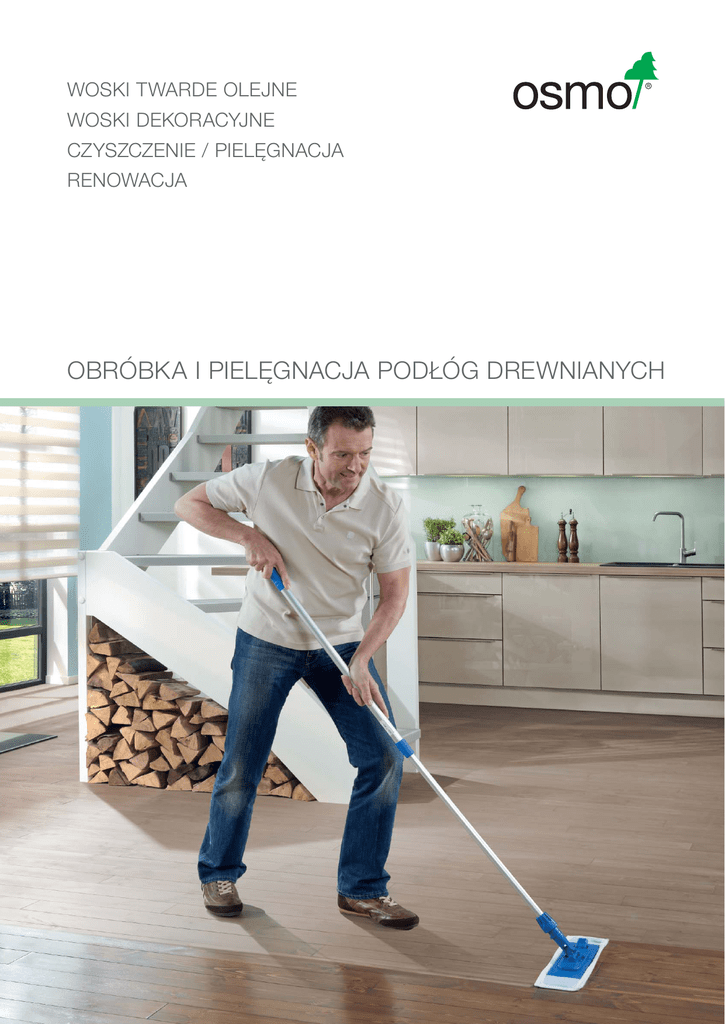 WOSKI TWARDE OLEJNE WOSKI DEKORACYJNE CZYSZCZENIE / PIELĘGNACJA RENOWACJA OBRÓBKA I PIELĘGNACJA PODŁÓG DREWNIANYCH Moja podłoga drewniana wygląda doskonale. Jest przyjemna w dotyku, naturalna, trwała i powinna taka pozostać przez wiele lat. SPIS TREŚCI SPIS TREŚCI 4 ZESTAWIENIE PRODUKTÓW PRZYGOTOWANIE PODŁOGI 5 6–7 POWŁOKI BEZBARWNE 8 Wosk Twardy Olejny Original Wosk Twardy Olejny Anti-Slip R9/R11 Wosk Twardy Olejny Rapid Wosk Twardy Olejny 2K Eco Pure Wosk Twardy Olejny Effekt: Surowe Drewno Wosk Olejny Do Egzotyków 9 9 10 11 12 13 POWŁOKI BARWIĄCE 14 Wosk Twardy Olejny Kolor Bejca Olejna Wosk Twardy Olejny Effekt 15 16 17 Wosk Dekoracyjny Lazurowy Wosk Dekoracyjny Creativ Natryskowy Wosk Olejny 18 – 19 18 – 19 20 CZYSZCZENIE I PIELĘGNACJA 21 – 25 Koncentrat Wish-Fix Intensywny Środek Czyszczący Środek Do Czyszczenia i Pielęgnacji Wosku Środek Do Czyszczenia i Pielęgnacji Wosku, Spray Wosk regeneracyjny Wosk Twardy Olejny Zestaw Opti-Set Zestaw Pielęgnacyjny Do Podłóg 24 24 24 24 24 24 25 25 CZĘŚCIOWA RENOWACJA 26 – 27 Narzędzia i akcesoria 28 – 29 ENCYKLOPEDIA DREWNA PYTANIA I ODPOWIEDZI 30 – 31 Rekomendacje dla różnych gatunków drewna Pytania i odpowiedzi 30 31 ZESTAWIENIE PRODUKTÓW POWŁOKI BEZBARWNE WOSK TWARDY OLEJNY ORIGINAL (str. 9) WOSK TWARDY OLEJNY ANTI-SLIP (str. 9) WOSK TWARDY OLEJNY RAPID (str. 10) re Eco Pu p Anti-Sli WOSK OLEJNY DO EGZOTYKÓW (str. 13) NATRYSKOWY WOSK OLEJNY (str. 20) WOSK TWARDY OLEJNY KOLOR (str. 15) BEJCA OLEJNA (str. 16) WOSK TWARDY OLEJNY EFFEKT (str. 17) WOSK DEKORACYJNY LAZUROWY (str. 18-19) WOSK DEKORACYJNY CREATIV (str. 18-19) WOSK TWARDY OLEJNY EFFECT SUROWE DREWNO (str. 12) WOSK TWARDY OLEJNY 2K (str. 10) POWŁOKI BARWIĄCE Kolor CZYSZCZENIE I PIELĘGNACJA KONCENTRAT WISH-FIX (str. 24) INTENSYWNY ŚRODEK CZYSZCZĄCY (str. 24) WOSK REGENERACYJNY (str. 24) ZESTAW OPTI-SET (str. 25) ZESTAW PIELĘGNACYJNY DO PODŁÓG (str. 25) SZCZOTKA PARKIECIARSKA OSMO (str. 28) PĘDZLE DO MALOWANIA (str. 28) SZPACHLA RĘCZNA (str. 28) DUŻY ZESTAW DO APLIKACJI (str. 28) MAŁY ZESTAW DO APLIKACJI (str. 10) MASZYNA POLERSKA FLOORXCENTER (str. 29) MASZYNA DO CZYSZCZENIA TARASÓW (str. 29) ŚRODEK DO CZYSZCZENIA I PIELĘGNACJI WOSKU (str. 24) WOSK TWARDY OLEJNY (str. 24) CZĘŚCIOWA RENOWACJA 5 PRZYGOTOWANIE PODŁOGI DOBRZE PRZYGOTOWANA NA DOSKONAŁY EFEKT 6 Będziesz wiedzieć i czuć, czy podłoga została prawidłowo oszlifowana – powierzchnia będzie gładka, ale zachowa bogatą strukturę optyczną. W przeciwieństwie do powierzchni z tworzywa i metalu, w drewnie zawsze można wyczuć kierunek wzrostu włókien. Wzdłuż włókien drewna organiczny materiał wydaje się gładki, a poprzecznie do włókna tępy. Aby osiągnąć idealne efekty należy zawsze pracować wzdłuż słojów drewna. IDEALNY SZLIF KROK PO KROKU KROK 1 W zależności od rodzaju podłogi szlifowanie rozpoczyna się papierem o ziarnie grubym lub średnim (P 40 a następnie P 60 przy usuwaniu starych powłok; P 80 przy surowym drewnie) Ważne: W trakcie kolejnych szlifowań nie należy robić zbyt dużych przeskoków w grubości ziarna. KROK 2 Papier o średniej grubości ziarna (P 100) przy pomocy maszyny jedno- lub 3-tarczowej lub szlifierki bębnowej / taśmowej KROK 3 Jeżeli jest to konieczne - wypełnianie szpar, pęknięć i ubytków (do głębokości 2 mm) za pomocą szpachli Osmo KROK 4 Papier / siatka ścierna o średniej grubości ziarna (P 100) przy pomocy maszyny jedno- lub 3-tarczowej KROK 5 Papier / siatka ścierna o drobnym ziarnie (P 120) przy pomocy maszyny jedno- lub 3-tarczowej Drewno z natury charakteryzuje się dużą gęstością włókien, więc podłoga drewniana, która została prawidłowo oszlifowana i zabezpieczona Woskiem Twardym Olejnym jest odporna na wcieranie brudu w jej powierzchnię. Strukturalne walory drewna powstają podczas przetwarzania materiału. Pnie drzew są najpierw cięte na surową tarcicę, która następnie jest strugana i szlifowana do postaci desek podłogowych. Po instalacji deski są ponownie szlifowane pod nałożenie Wosku Twardego Olejnego, co sprawia, że powierzchnia jest przyjemna w dotyku i dobrze zabezpieczona. Podłogi, który były już wcześniej olejowane lub pokryte powłokami Osmo, przed renowacją nie muszą być szlifowane w całości. W przypadku podłóg uszkodzonych, lakierowanych lub nowych (nieobrobionych), dokładne szlifowanie jest niezbędne dla udanego nałożenia Wosku Twardego Olejnego. 7 POWŁOKI BEZBARWNE Drewno to drewno – jest naturalne, żywe i niezwykle wytrzymałe – wytrzyma nawet lądowanie mojego samolotu. BEZBARWNE POWŁOKI DO DREWNA WOSKI TWARDE OLEJNE: NIEMAL NIEWIDOCZNA OCHRONA PODŁÓG DREWNIANYCH Czy lubisz podłogi drewniane? Zapewnij im więc odpowiednią powłokę ochronną. Woski Twarde Olejne Osmo zabezpieczają drewno przed ścieraniem, zarysowaniem, brudem i wilgocią, podkreślając jednocześnie jego unikalny charakter i naturalne piękno. Drewno to materiał organiczny, który podobnie jak ludzka skóra potrafi przyjmować i oddawać wilgoć. Mówi się, że drewno oddycha. Aby zachować tę naturalną zdolność, 8 firma Osmo opracowała powłoki idealnie dopasowane do organicznych właściwości drewna. Zawarte w nich oleje wnikają w drewno, chroniąc je od wewnątrz, a naturalne woski tworzą elastyczną, mikroporowatą powłokę, która chroni je z zewnątrz. Dzięki temu drewno pozostaje piękne na długie lata. Woski Twarde Olejne firmy Osmo bazują na naturalnych olejach i woskach roślinnych. Są odporne na pot i ślinę, dopuszczone do kontaktu z żywnością i powlekania zabawek. Woski twarde Olejne podbijają naturalną barwę drewna, nadając mu piękny efekt wilgotnego drewna. WOSK TWARDY OLEJNY ORIGINAL / ANTI-SLIP 4 STOPNIE POŁYSKU WOSK TWARDY OLEJNY ORIGINAL / ANTI-SLIP NAKŁADANIE RĘCZNE Powierzchnia gotowa w 2 dni ZALETY > > > > > niezwykle wytrzymały i trwały odporny na pot i ślinę, bezpieczny dla dzieci op