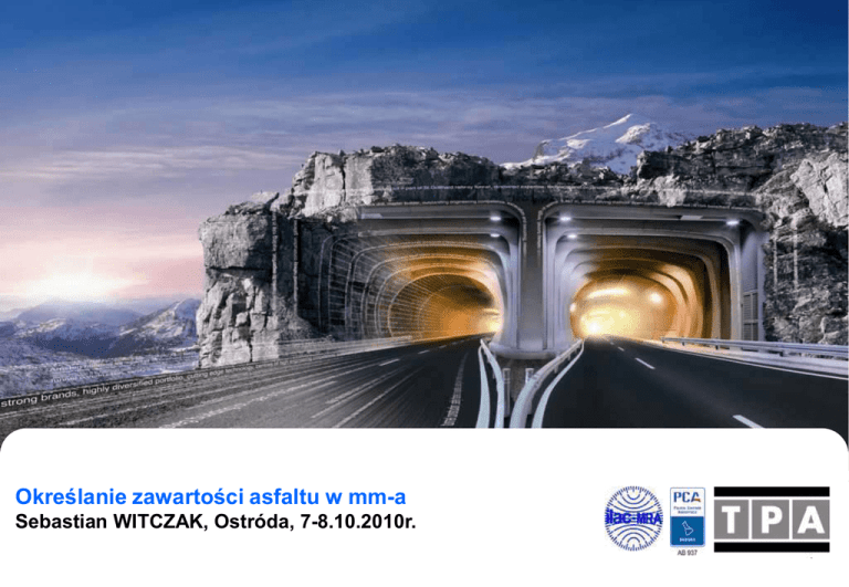 Określanie zawartości asfaltu w mm-a Sebastian WITCZAK, Ostróda, 7-8.10.2010r. Mieszanka mineralno-asfaltowa Mieszanka mineralno-asfaltowa na budowie Próbka mieszanki mineralno-asfaltowej w laboratorium Określanie zawartości asfaltu w mm-a OSTRÓDA, 7-8.10.2010 S.WITCZAK 2 Mieszanka mineralno-asfaltowa Asfalt rozpuszczalny Określanie zawartości asfaltu w mm-a OSTRÓDA, 7-8.10.2010 S.WITCZAK 3 Lepiszcze rozpuszczalne Norma PN-EN 12697-1 „Zawartość lepiszcza rozpuszczalnego” – definicje: • „Zawartość lepiszcza rozpuszczalnego – ilość lepiszcza w próbce nie zawierającej wody i dająca się wyekstrahować z tej próbki, wyrażona w procentach masy” • „Zawartość lepiszcza nierozpuszczalnego – ilość lepiszcza, która pozostaje na ziarnach kruszywa po ekstrakcji, wyrażona w procentach masy” Określanie zawartości asfaltu w mm-a OSTRÓDA, 7-8.10.2010 S.WITCZAK 4 Lepiszcze rozpuszczalne Norma PN-EN 12697-1 „Zawartość lepiszcza rozpuszczalnego” – cytaty: • „Procedura wykonywania ekstrakcji powinna zapewniać, że lepiszcze rozpuszczalne nie pozostanie na powierzchni ziaren kruszywa i w całości zostanie wyekstrahowane” – p. 5.2.3.3 • „UWAGA: W pewnych przypadkach może się zdarzyć, że trudno będzie w całości rozpuścić lepiszcze przylegające do ziaren kruszywa” – p. 5.2.3.3 • „UWAGA 2: W przypadku, gdy lepiszcze w mieszance zawiera dużą ilość części nierozpuszczalnych, całkowitą zawartość lepiszcza można obliczyć biorąc pod uwagę również nierozpuszczalną ilość lepiszcza” – p. 5.5.1 Określanie zawartości asfaltu w mm-a OSTRÓDA, 7-8.10.2010 S.WITCZAK 5 Lepiszcze rozpuszczalne Norma PN-EN 12697-1 „Zawartość lepiszcza rozpuszczalnego” (Załącznik A – wskazania przy oznaczaniu zawartości lepiszcza) – cytaty: • „Przy oznaczaniu całkowitej zawartości lepiszcza w mieszance, zawierającego składniki nierozpuszczalne należy uwzględnić tę część asfaltu, która nie rozpuszcza się w rozpuszczalniku.” • „Zaleca się, aby część nierozpuszczalną lepiszcza oznaczono na próbce lepiszcza, które jest stosowane do produkcji mieszanki.” Określanie zawartości asfaltu w mm-a OSTRÓDA, 7-8.10.2010 S.WITCZAK 6 Lepiszcze rozpuszczalne Norma PN-EN 12697-1 „Zawartość lepiszcza rozpuszczalnego” (Załącznik A – wskazania przy oznaczaniu zawartości lepiszcza) – cytaty: • „Zaleca się wzięcie pod uwagę, że w asfalcie z warstwy nawierzchni mogą wystąpić zmiany w porównaniu z tym samym asfaltem ze świeżo wyprodukowanej mieszanki. Zmiany mogą wpłynąć na rozpuszczalność tego asfaltu. W przypadku starych nawierzchni czynnik ten, w połączeniu z ze stratą asfaltu spowodowaną przez ruch, zmianą w uziarnieniu mieszanki spowodowaną zagęszczeniem oraz przecięciem ziaren podczas wycinania próbki może wpływać na wynik badania.” Określanie zawartości asfaltu w mm-a OSTRÓDA, 7-8.10.2010 S.WITCZAK 7 Wyniki badań próbek mm-a z WMA i mm-a z odwiertów z nawierzchni Przykład: AC WMS 16 Wg SST: „Orientacyjna zawartość asfaltu: 5,1 – 6,0%” Zawartość asfaltu wg recepty: 4,8% Odchyłki zawartości asfaltu zatwierdzone przez Nadzór: -0,0% / +0,3% Lokalizacja Zawartość asfaltu [%] (Lab. Nadzoru) Zawartość asfaltu [%] (Lab. dodatkowe) Zawartość asfaltu [%] (Lab. Wykonawcy) W-wa wiążąca, km 10+450 4,4 4,8 4,8 W-wa wiążąca, km 9+850 - 4,2 5,1 Podbudowa górna, km 10+450 4,6 5,0 5,1 Podbudowa dolna, km 10+450 4,5 5,0 4,7 Podbudowa górna, km 9+850 4,8 4,5 5,1 Podbudowa dolna, km 9+850 4,7 5,1 5,2 Określanie zawartości asfaltu w mm-a OSTRÓDA, 7-8.10.2010 S.WITCZAK 8 Lepiszcze rozpuszczalne Norma PN-EN 12697-1 „Zawartość lepiszcza rozpuszczalnego” (p.8 – Dane dotyczące dokładności) – cytaty: • „Powtarzalność wyników r oznaczania zawartości lepiszcza wynosi 0,3%, zaś odtwarzalność R wynosi 0,5% - wyniki dokładności badań dwóch próbek uzyskanych z tej samej próbki ogólnej” Określanie zawartości asfaltu w mm-a OSTRÓDA, 7-8.10.2010 S.WITCZAK 9 Właściwości absorpcyjne kruszyw mineralnych Norma PN-EN 12697-5 „Oznaczanie gęstości” (Załącznik B – oznaczanie właściwości absorpcyjnych kruszyw mineralnych do mieszanek mineralno-asfaltowych) – cytaty: • „Obecność w kruszywie mineralnym przepuszczalnych wolnych przestrzeni, które są dostępne dla lepiszcza wpływa na wielkość gęstości mieszanki mineralno-asfaltowej. Kiedy stosuje się takie kruszywo do mieszanki mineralno-asfaltowej lepiszcze jest wówczas wchłaniane przez jego wolne przestrzenie. W konsekwencji prowadzi to do zwiększenia zawartości wolnej przestrzeni w próbce.” – B.1 • „Doświadczenie potwierdza, że przeciętna objętościowa absorpcja lepiszcza wynosi około 1/3 objętości zewnętrznych (dostępnych) porów w kruszywie. Oznacza to, że porowatość rzędu 1,5% (v/v) będzie powodowała maksymalną absorpcję lepiszcza około 0,5% (v/v) lub 0,2% (m/m).” – B.5.9 Określanie zawartości asfaltu w mm-a OSTRÓDA, 7-8.10.2010 S.WITCZAK 10 Właściwości absorpcyjne kruszyw mineralnych Asfalt zaabsorbowany na powierzchni ziaren kruszywa Określanie zawartości asfaltu w mm-a OSTRÓDA, 7-8.10.2010 S.WITCZAK 11 Przepisy niemieckie TP A-01 Niemiecki dokument Technische Prüfvorschriften für Asphalt und Strassenbau TP A-StB, Teil 1: Bindemittelgehalt (TP A-01) wprowadza wzór na obliczanie zawartości lepiszcza nierozpuszczalnego (poprawka do ilości asfaltu uzyskanej z ekstrakcji): Bunl = 0,014 * F + 0,1 [%], gdzie F – zawartość ziarn poniżej 0,063mm w mieszance kruszywa Określanie zawartości asfaltu w mm-a OSTRÓDA, 7-8.10.2010 S.WITCZAK 12 Korekta na zawartość asfaltu wg projektu polskiej normy PN-S-04001/16 Określanie zawartości asfaltu w mm-a OSTRÓDA, 7-8.10.2010 S.WITCZAK 13 Badania własne Badania własne obejmowały wykonanie 40 ekstrakcji mm-a oraz 40 ekstrakcji „ślepych” (bez asfalt