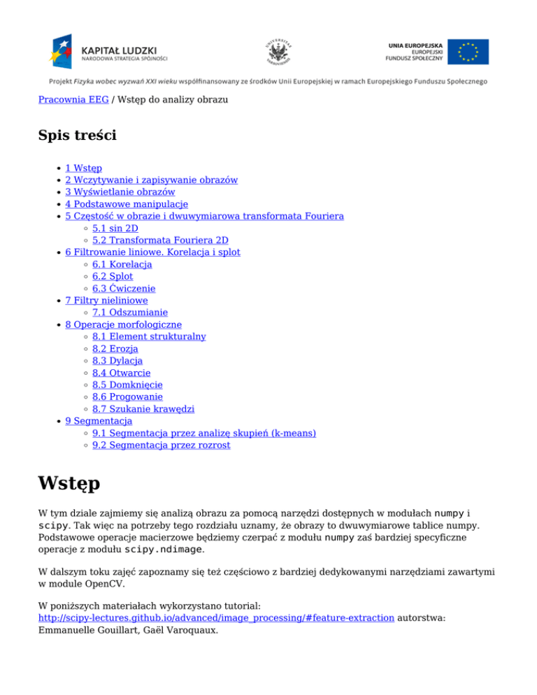 W tym dziale zajmiemy się analizą obrazu za pomocą narzędzi dostępnych w modułach numpy i