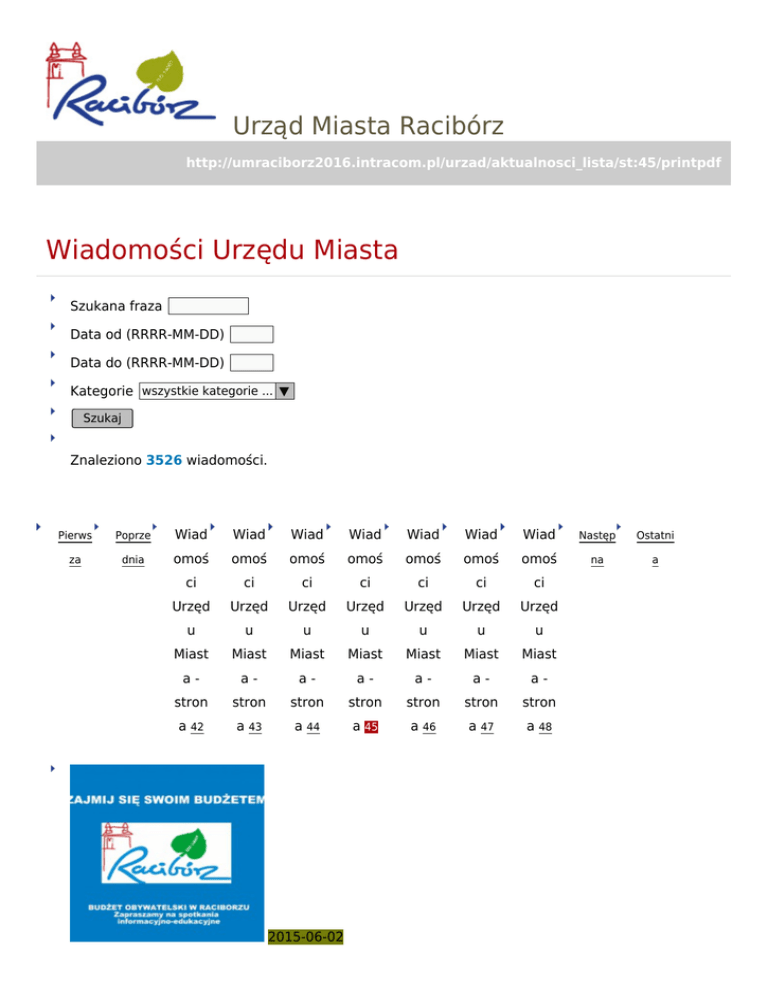 Wiadomości Urzędu Miasta - Urząd Miasta Racibórz