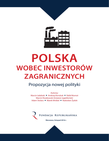 POLSKA WOBEC INWESTORÓW ZAGRANICZNYCH Propozycja nowej polityki Autorzy: Marcin Izdebski Andrzej Kensbok Rafał Momot Marcin Roszkowski (Instytut Jagielloński) Adam Stolarz Marek Wróbel Radosław Żydok Warszawa, listopad 2016 r. SPIS TREŚCI 1.Abstrakt . . . . . . . . . . . . . . . . . . . . . . . . . . . . . . . . . . . . . . . . . . . . . . . 2 2.Wprowadzenie . . . . . . . . . . . . . . . . . . . . . . . . . . . . . . . . . . . . . . . . . 7 2.1.Wnioski: . . . . . . . . . . . . . . . . . . . . . . . . . . . . . . . . . . . . . . . . . . . . . . . 8 3. Rola inwestorów zagranicznych w polskiej gospodarce . . . . . . 3.1.Pozyskiwanie kapitału . . . . . . . . . . . . . . . . . . . . . . . . . . . . . . . . . . 3.2.Transfer technologii . . . . . . . . . . . . . . . . . . . . . . . . . . . . . . . . . . . . 3.3.Budowa kultury biznesowej . . . . . . . . . . . . . . . . . . . . . . . . . . . . . 3.4.Wnioski: . . . . . . . . . . . . . . . . . . . . . . . . . . . . . . . . . . . . . . . . . . . . . . 10 10 14 15 15 4. Motywacje inwestorów . . . . . . . . . . . . . . . . . . . . . . . . . . . . . . . . . . 17 4.1.Wnioski: . . . . . . . . . . . . . . . . . . . . . . . . . . . . . . . . . . . . . . . . . . . . . . 20 5. Narzędzia oddziaływania na inwestorów . . . . . . . . . . . . . . . . . . 22 5.1.Wnioski: . . . . . . . . . . . . . . . . . . . . . . . . . . . . . . . . . . . . . . . . . . . . . . 23 6. Cechy idealnego inwestora . . . . . . . . . . . . . . . . . . . . . . . . . . . . . . 6.1.Innowacyjność . . . . . . . . . . . . . . . . . . . . . . . . . . . . . . . . . . . . . . . . 6.2.Osadzenie w gospodarce globalnej . . . . . . . . . . . . . . . . . . . . . . . 6.3.Współpraca z polską gospodarką . . . . . . . . . . . . . . . . . . . . . . . . 6.4.Wpływ na kapitał ludzki . . . . . . . . . . . . . . . . . . . . . . . . . . . . . . . . 6.5.Zgodność z polskimi regulacjami . . . . . . . . . . . . . . . . . . . . . . . . 6.6.Wnioski: . . . . . . . . . . . . . . . . . . . . . . . . . . . . . . . . . . . . . . . . . . . . . . 24 24 24 25 25 26 27 7. Negatywne cechy inwestora . . . . . . . . . . . . . . . . . . . . . . . . . . . . . 28 7.1.Wnioski: . . . . . . . . . . . . . . . . . . . . . . . . . . . . . . . . . . . . . . . . . . . . . . 29 8. Powstrzymywanie niepożądanych inwestorów . . . . . . . . . . . . . 30 8.1.Wnioski: . . . . . . . . . . . . . . . . . . . . . . . . . . . . . . . . . . . . . . . . . . . . . . 30 9.Notatki . . . . . . . . . . . . . . . . . . . . . . . . . . . . . . . . . . . . . . . . . . . . . . . 31 ul. Nowy Świat 41, 00-042 Warszawa tel.: +48 22 891 07 37, tel.: +48 512 435 471, www.fundacjarepublikanska.org NIP: 952-207-86-26, REGON: 142075516, KRS: 0000340559 nr konta bankowego: Alior Bank 84 2490 0005 0000 4520 9156 1754 1 POLSKA WOBEC INWESTORÓW ZAGRANICZNYCH 1. ABSTRAKT Zmierzch PRL, ustawa Wilczka, kryzys gospodarczy początku lat 90. i gwałtowny wzrost popytu na produkty zagraniczne – to główne czynniki, które miały wpływ na ogromną przemianę polskiej gospodarki. Doprowadziły one do upadku wiele przedsiębiorstw państwowych. Jednocześnie spowodowały otwarcie się rynku na import, co zachęciło inwestorów zagranicznych do rozpoczęcia działalności w Polsce – czy to poprzez udział w prywatyzacjach, czy poprzez zakładanie nowych podmiotów gospodarczych od zera. Wszystkie dotychczasowe polskie rządy stawiały bardzo niskie wymagania inwestorom zagranicznym w Polsce. Zachęcały ich wręcz masowo do instalowania się w Specjalnych Strefach Ekonomicznych, gdzie otrzymywali lepsze warunki niż konkurencyjne polskie przedsiębiorstwa spoza SSE. Otwarcie się Polski na świat przyczyniło się do stworzenia pozytywnego wizerunku wśród inwestorów. Nasz kraj zaczął być postrzegany jako część Zachodu i miejsce, gdzie panują wysokie standardy i istnieją dobre warunki do prowadzenia biznesu. Władze żywiły nadzieję, że efektem licznych inwestycji zagranicznych stanie się transfer technologii, wiedzy i kultury biznesowej. Najważniejszym zadaniem było jednak przeciwdziałanie bezrobociu i deficytowi handlowemu, więc ostateczna ocena inwestycji była dość powierzchowna. Dziś problemami Polski nie jest już ani deficyt handlowy, ani strukturalne bezrobocie. Dlatego potrzebujemy nowej polityki wobec inwestorów zagranicznych. Najwłaściwszym rozwiązaniem byłoby niewątpliwie wyrównanie warunków inwestycyjnych podmiotów zagranicznych i rodzimych przedsiębiorców, niezależnie od lokalizacji i wielkości inwestycji. Ze względu jednak na podjętą przez Radę Ministrów decyzję o przedłużeniu funkcjonowania Specjalnych Stref Ekonomicznych co najmniej do 2026 roku, konieczne jest włączenie tego elementu w propozycje rozwiązań systemowych. Możliwe jest wszakże usprawnienie ich funkcjonowania poprzez nadanie preferencji inwestorom, którzy posiadają cechy pozytywne wskazane w dalszej części raportu. Aby nie powtórzyć błędów przeszłości i dostosować politykę państwa do jego dzisiejszych potrzeb, niezbędne jest przeanalizowanie motywacji inwestorów zagranicznych i korzyści, które Polska może czerpać z ich działań. Wraz z narzędziami wspierania i odstraszania złożą się one w pełny obraz propozycji nowego ułożenia stosunków państwo-inwestor. Rola inwestorów zagranicznych w Polsce Poziom oszczędności polskich gospodarstw domowych znajduje się w trendzie malejącym od 2001 roku i obecnie jest zdecydowanie poniżej średniej unijnej, a nawet regionalnej. Dlatego Polska do finansowania inwestycji potrzebuje kapitału zagranicznego. W analizie korzyści inwestycji zagranicznych dla Polski często pomija się główną motywację inwestora: zysk wyższy niż poniesione koszty. Oznacza to, że obecny napływ kapitału pociągnie za sobą w przyszłości jego odpływ z tytułu zysków i dywidend. Dlatego ważne jest, aby inwestycja była wysokiej jakości, a jej długoterminowe oddzia
