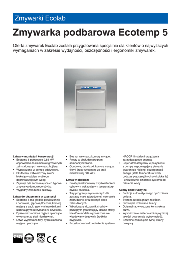 Zmywarka podbarowa Ecotemp 5