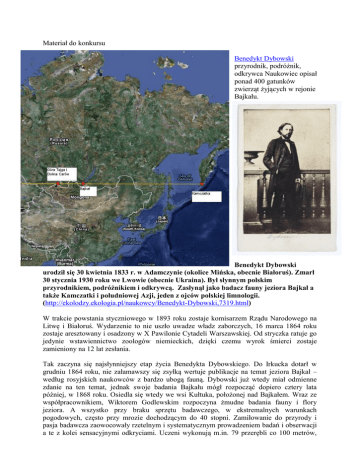 Materiał do konkursu Benedykt Dybowski przyrodnik, podróżnik