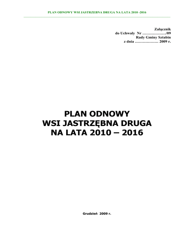 plan odnowy wsi jastrzębna druga na lata 2010 – 2016