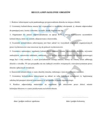 REGULAMIN KOLONII/ OBOZÓW
