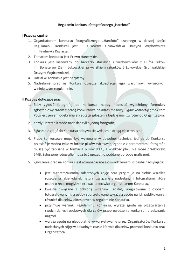 Regulamin konkursu fotograficznego „Harcfoto” I Przepisy ogólne 1