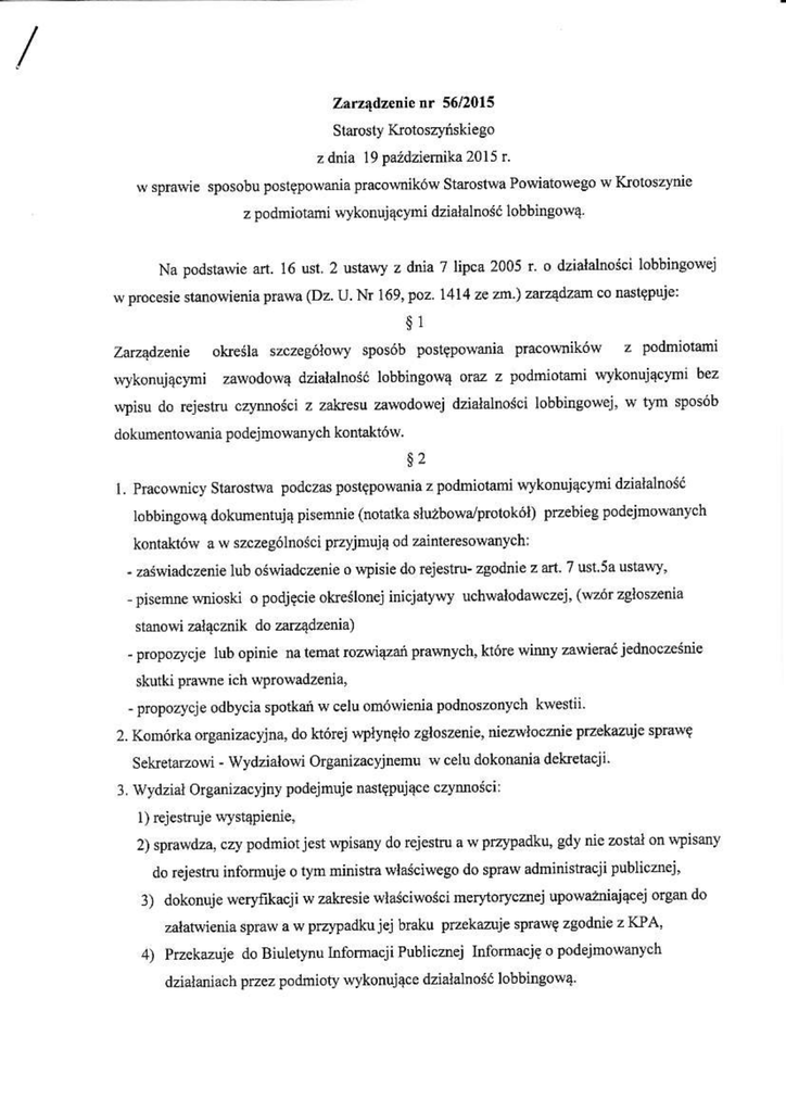 Nr 56/2015 z dnia 19.09.2015 roku w sprawie sposobu