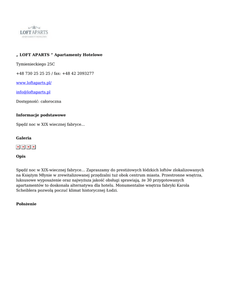 „ LOFT APARTS ” Apartamenty Hotelowe Tymienieckiego 25C +48