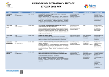kalendarium bezpłatnych szkoleń styczeń 2016 rok