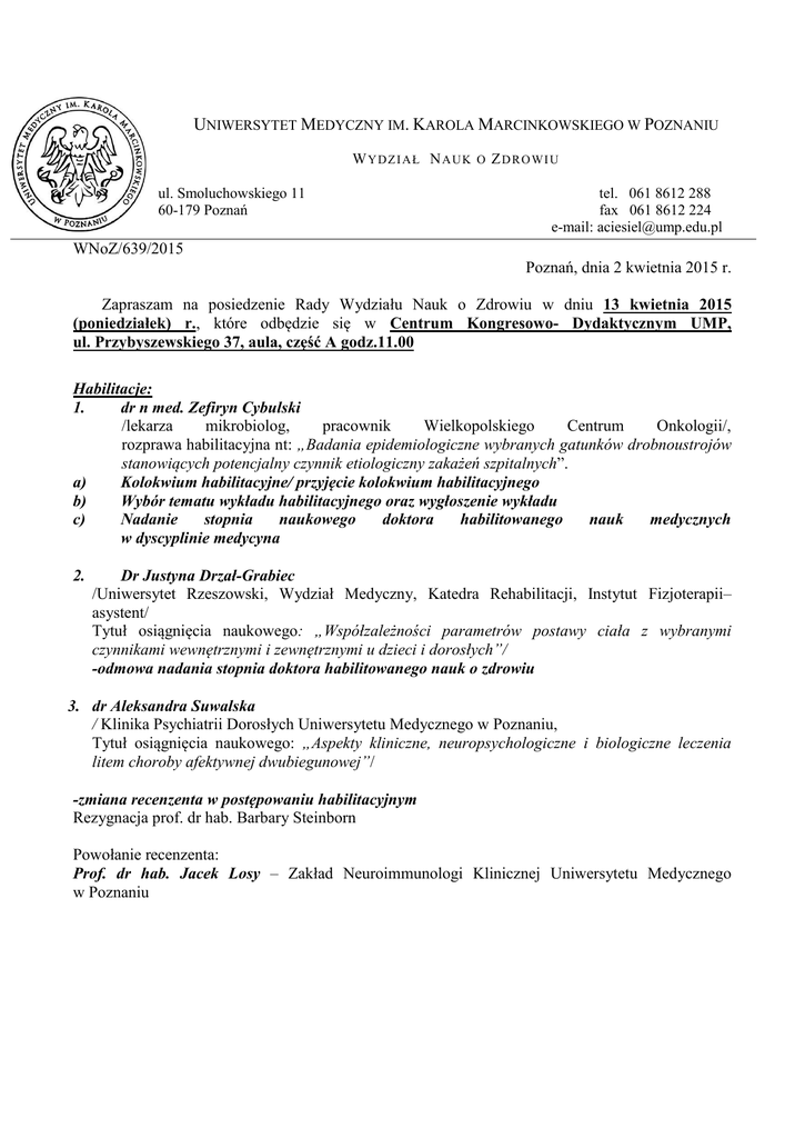 13.04.2015 r. - Uniwersytet Medyczny im. Karola Marcinkowskiego