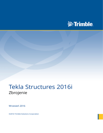 Tekla Structures 2016i Zbrojenie Wrzesień 2016 ©2016 Trimble Solutions Corporation Spis treści 1 Tworzenie zbrojenia...................................................................... 5 1.1 1.2 1.3 Tworzenie pręta zbrojeniowego...................................................................... 5 Tworzenie grupy prętów zbrojeniowych........................................................ 8 Tworzenie grupy prętów zbrojeniowych za pomocą Katalogu kształtów prętów zbrojeniowych.................................................................. 13 Dodawanie kształtów zbrojenia do widoku drzewa w Katalogu kształtów prętów zbrojeniowych........................................................................................................... 18 Ustawianie punktu referencyjnego zbrojenia w Katalogu kształtów prętów zbrojeniowych........................................................................................................................ 18 Zbrojenie obiektów wylewanych z użyciem Katalogu kształtów prętów zbrojeniowych........................................................................................................................ 21 1.4 1.5 1.6 1.7 1.8 1.9 1.10 1.11 1.12 1.13 1.14 1.15 1.16 Tworzenie grupy zakrzywionych prętów zbrojeniowych............................23 Tworzenie grupy pierścieniowych prętów zbrojeniowych......................... 27 Tworzenie grupy stożkowych lub spiralnych prętów zbrojeniowych........32 Tworzenie prostokątnej siatki zbrojeniowej................................................34 Tworzenie wielobocznej siatki zbrojeniowej............................................... 37 Tworzenie giętej siatki zbrojeniowej............................................................ 40 Tworzenie niestandardowej siatki zbrojeniowej.........................................44 Tworzenie układu cięgien zbrojenia............................................................. 47 Izolacja cięgien zbrojeniowych...................................................................... 50 Tworzenie połączenia zbrojenia.................................................................... 53 Właściwości prętów zbrojeniowych i grupy prętów zbrojeniowych..........55 Właściwości siatki zbrojeniowej.................................................................... 58 Właściwości cięgna zbrojenia........................................................................ 59 2 Zmiana zbrojenia......................................................................... 62 2.1 2.2 2.3 2.4 2.5 2.6 2.7 2.8 2.9 2.10 Stosowanie bezpośredniej zmiany w celu zmiany zbrojenia..................... 62 Dodawanie haków dla prętów zbrojeniowych.............................................66 Definiowanie grubości otuliny zbrojenia..................................................... 68 Rozmieszczanie prętów w grupie prętów zbrojeniowych...........................70 Usuwanie prętów z grupy prętów zbrojeniowych....................................... 72 Stosowanie uchwytów do zmiany zbrojenia................................................ 74 Stosowanie adaptacyjności do zmiany zbrojenia........................................75 Dołączanie zbrojenia do elementu betonowego......................................... 76 Rozgrupowywanie zbrojenia.......................................................................... 77 Grupowanie zbrojenia.................................................................................... 78 2 2.11 2.16 2.17 2.18 Scalanie dwóch prętów lub grup prętów zbrojeniowych w jedną grupę.................................................................................................................80 Rozdzielanie grupy prętów zbrojeniowych ..................................................80 Sprawdzanie poprawności geometrii zbrojenia.......................................... 81 Dzielenie i łączenie zbrojenia (AutomaticSplicingTool).............................. 82 Przypisywanie numerów porządkowych do zbrojenia (RebarSeqNumbering).................................................................................... 83 Klasyfikowanie zbrojenia do warstw (RebarClassificator).........................84 Jak obliczyć długość prętów zbrojeniowych.................................................85 Jak obliczyć długość ramion prętów zbrojeniowych................................... 88 3 Rozpoznawanie kształtu zbrojenia............................................91 3.1 Rozpoznawanie kształtu zbrojenia dzięki Menedżerowi kształtów prętów zbrojeniowych.................................................................................... 92 2.12 2.13 2.14 2.15 Definiowanie kształtów gięcia prętów w Menedżerze kształtów prętów zbrojeniowych........................................................................................................................ 92 Dodaj nowe reguły kształtów gięcia ręcznie w Menedżerze kształtów prętów zbrojeniowych........................................................................................................................ 95 Definiowanie zawartości szablonów i raportów w Menedżerze kształtów prętów zbrojeniowych.........................................................................................................100 Porady dotyczące rozpoznawanie kształtu zbrojenia w Menedżerze kształtów prętów zbrojeniowych.........................................................................................................101 3.3 Zakodowane na stałe identyfikatory typu gięcia w rozpoznawaniu kształtu zbrojenia.............................................................. 102 Zbrojenie w szablonach................................................................................ 126 4 Zastrzeżenie............................................................................... 129 3.2 3 4 1 Tworzenie zbrojenia Po utworzeniu modelu 