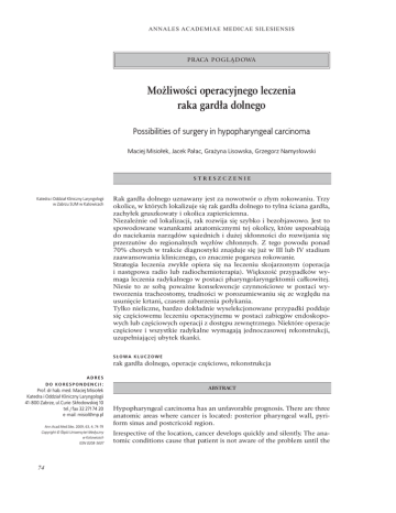 Możliwoś›ci operacyjnego leczenia raka gardł‚a dolnego