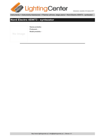 Utworzono: czwartek, 02 marzec 2017 Instrumenty > Instrumenty klawiszowe > Pianina cyfrowe, stage piana > Nord Electro 4SW73 - syntezator Nord Electro 4SW73 - syntezator Nazwa produktu: Producent: Model produktu: - No image http://www.lightingcenter.pl | [email protected] | | Strona 1/1