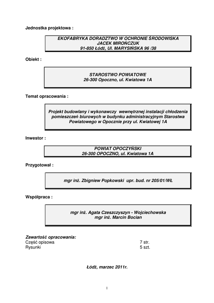 Jednostka projektowa : EKOFABRYKA DORADZTWO W
