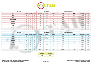 Team 1 TRAFIENIA ZUŻYTA AMUNICJA ID zginał trafił bilans