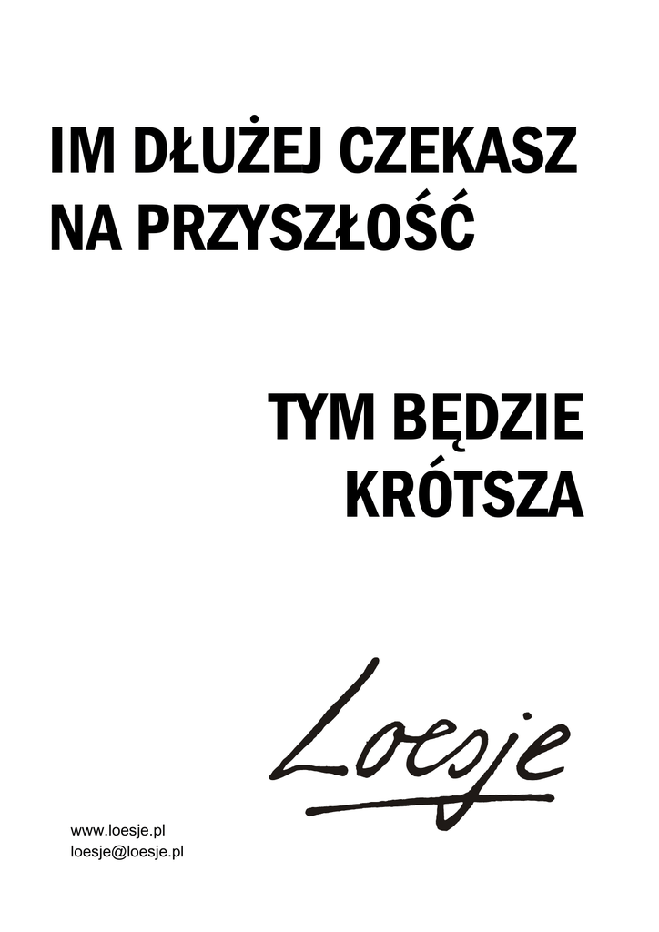 IM DŁUŻEJ CZEKASZ NA PRZYSZŁOŚĆ TYM BĘDZIE KRÓTSZA www.loesje.pl [email protected]