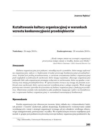 Kształ to wa nie kul tu ry or ga ni za cyj nej w wa run kach wzro stu