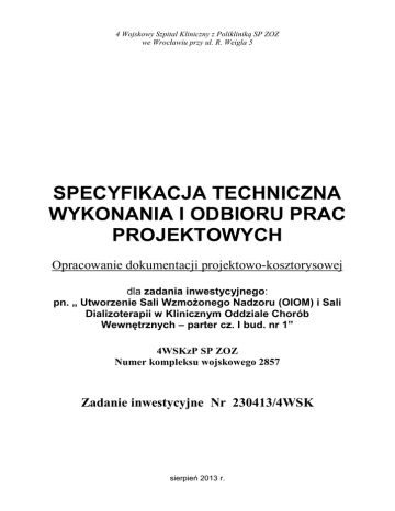ST wykonania i odbioru robót budowlanych i branżowych wewnętrznych w 6 egz.