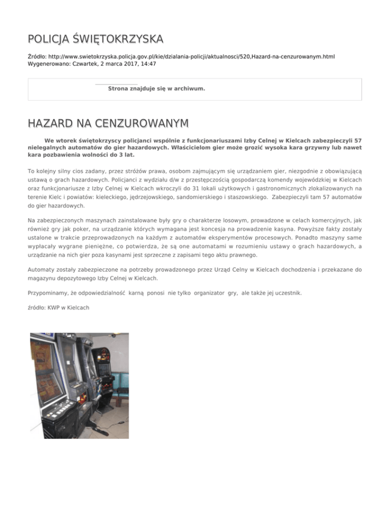 POLICJA ŚWIĘTOKRZYSKA HAZARD NA CENZUROWANYM