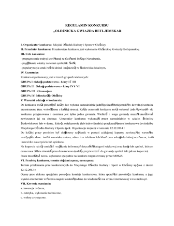 REGULAMIN KONKURSU ,,OLEŚNICKA GWIAZDA BETLJEMSKA”