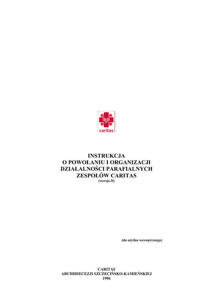INSTRUKCJA O POWOŁANIU I ORGANIZACJI DZIAŁALNOŚCI PARAFIALNYCH ZESPOŁÓW CARITAS (wersja II) (do użytku wewnętrznego) CARITAS ARCHIDIECEZJI SZCZECIŃSKO-KAMIEŃSKIEJ 1996 „Wielką potrzebą a nawet koniecznością byłoby w pięciolecie wydania statutu Caritas powstanie we wszystkich parafiach naszej Archidiecezji Parafialnych Zespołów Caritas...” (z listu Arcybiskupa Mariana Przykuckiego do księży proboszczów z 15.09.1994 r.) W nawiązaniu do powyższych słów naszego Arcypasterza - Zarząd Caritas Archidiecezji Szczecińsko-Kamieńskiej przekazuje księżom proboszczom Instrukcję o powołaniu i organizacji działalności PARAFIALNYCH ZESPOŁÓW CARITAS. W myśl bowiem postanowień Konferencji Episkopatu Polski z roku 1986 proboszczowie zobowiązani są do świadczenia miłosierdzia na terenie parafii w formie zorganizowanej a więc w sposób przewidziany niniejszą Instrukcją. Traktując ją jako wzorzec, można stosować w praktyce pewne modyfikacje niektórych zaleceń Instrukcji uzasadnione szczególnymi warunkami i możliwościami danej parafii. Wszelkich dodatkowych informacji i wyjaśnień w sprawach związanych z wprowadzeniem w życie niniejszej Instrukcji udziela Caritas Archidiecezji Szczecin, ul. Królowej Korony Polskiej 27. tel. 0914221156. DYREKTOR Caritas Archidiecezji Szczecińsko-Kamieńkiej Ks. Piotr Pryma Szczecin, luty 1966 r. SPIS TREŚCI: str. Podstawa formalno-prawna I. Powołanie Parafialnego Zespołu Caritas 1. Działania przygotowawcze 2. Zebranie parafian 3. Prace przed rozpoczęciem działalności Zespołu II. Organizacja działalności PZC 1. Ewidencja członków Zespołu 2. Organizacja pracy Rady Zespołu 3. Ewidencja osób potrzebujących pomocy 4. Dokumentacja finansowa 5. Gospodarka środkami finansowymi 6. Świadczenie pomocy rzeczowej 7. Działalność opiekuńcza 8. Aktywizacja charytatywna wspólnoty parafialnej III. Załączniki PODSTAWA FORMALNO – PRAWNA Parafialnych Zespołów Caritas Podstawą taką w naszej Archidiecezji stanowi Statut CARITAS Diecezji SzczecińskoKamieńskiej z dnia 8.12.1989 r. znak C5-39/89 CAR-1/90, którego Rozdział VI zawiera następujące postanowienia: § 20. Podstawową jednostką CARITAS jest Parafialny Zespół CARITAS zwany dalej Zespołem. § 21. Sposób powołania Zespołu, jego zadania i działalność opisana jest w Instrukcji Konferencji Episkopatu Polski o Pracy Charytatywnej z roku 1986 /por. L. dz. K-335-17/. § 22. W ramach Zespołu mogą powstawać Sekcje (por. nr 11 w/w Instrukcji). § 23. Powstałe na terenie parafii Placówki (por. § 13) są własnością bądź CARITAS, bądź też danej parafii jako osoby prawnej. Pełny tekst Statutu jest do wglądu w Biurze Caritas Archidiecezji Szczecińsko-Kamieńskiej w Szczecinie przy ul. Królowej Korony Polskiej nr 27. I. POWOŁANIE PARAFIALNEGO ZESPOŁU CARITAS 1. Działania przygotowawcze W parafiach, w których Zespół Caritas dotychczas nie został powołany, wytypowana z inicjatywy proboszcza grupa parafian (2-4 osób) po zapoznaniu się z treścią: – Instrukcji Konferencji Episkopatu Polski o pracy Charytatywnej w Parafiach z r.1986, – Statutu Caritas Diecezji Szczecińsko-Kamieńskiej z 8.12.1989, – Ramowych zasad działania parafialnego zespołu Caritas - stanowiących załącznik 1 niniejszej instrukcji, opracowuje w uzgodnieniu z proboszczem projekt „Zasad działania Parafialnego Zespołu Caritas” (określanego dalej skrótem PZC) uwzględniający lokalne możliwości, warunki i potrzeby danej parafii. Projekt ten oraz przygotowane formularze deklaracji członkowskich (wzory w załącznikach 2 i 3 nin. instrukcji) stanowią materiały wyjściowe na zebranie parafian w sprawie powołania PZC. 2. Zebranie parafian Proboszcz ustala w porozumieniu z grupą przygotowującą materiały wyjściowe, termin zebrania powiadamiając o nim parafian w niedzielnych ogłoszeniach duszpasterskich. Wskazanym byłoby wygłoszenie w tym dniu homilii na temat chrześcijańskiego miłosierdzia. Zebranie otwiera proboszcz prowadząc je przy współudziale - wyznaczonego z grupy przygotowującej materiały wyjściowe - sekretarza zebrania. Na program zebrania składa się: – odczytanie przez sekretarza projektu „Zasad działania PZC”, – dyskusja nad projektem, zgłaszanie przez uczestników zebrania ew. uzupełnień i w razie uznania ich zasadności naniesienie korekt w projekcie, – zatwierdzenie /z ew. poprawkami/ przez proboszcza "Zasad działania PZC" - co stanowi akt formalnego powołania PZC, – zwrócenie się do uczestników zebrania o podpisywanie deklaracji członkowskich przez decydujących się na włączenie do PZC i przekazanie podpisanych deklaracji sekretarzowi, Jeżeli deklaracje „członka czynnego” złoży ponad 10 osób, należałoby wyłoni spośród nich Radę Zespołu w składzie: 1. przełożony Zespołu, 2. skarbnik, 3. sekretarz, 4. opiekun magazynu, 5. koordynator działalności charytatywnej, Przy ilości członków czynnych poniżej 10-ciu, wszyscy stanowią Radę Zespołu dzieląc między sobą funkcje, z wyjątkiem przełożonego, którego powołuje proboszcz. 3. Prace przed rozpoczęciem działalności Zespołu Dla rozpoczęcia działalności PZC w formie zorganizowanej, niezbędne jest wykonanie następujących prac: – zamówienie pieczątki PZC, – przygotowanie formularzy deklaracji członków czynnych (zał. 2) i wspierających (zał. 3), – przygotowanie formularzy kart ewidencyjnych zgłoszenia o potrzebie świadczenia pomocy (zał. 4), – założenie rejestrów ewidencji: członków Zespołu (zał. 5), zgłoszeń o potrzebie świadczenia pomocy (zał. 6), – zakupienie bloczków dowodów kasowych KP i KW (zał. 7), oznakowanie ich pieczątką PZC i nadanie kolejnej numeracji jako drukom ścisłego zarachowania – oznakowanie tym samym numerem dwu egzemplarzy, na „oryginał”.i „kopię”, – zakupienie bloku raportów kasowych – do nabycia w handlu w formacie A-4 (zał. 8 p
