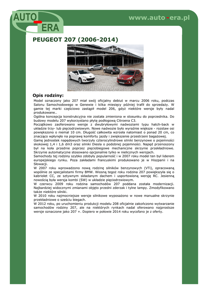 Opis rodziny: PEUGEOT 207. - AUTO-ERA
