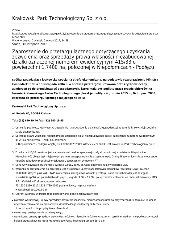 Generuj PDF - Krakowski Park Technologiczny Sp. z oo - Bip-e.pl