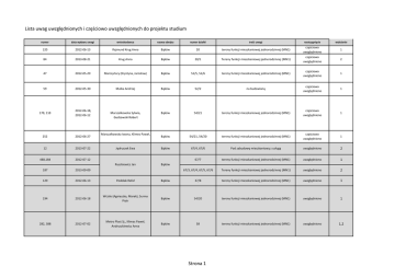 Lista uwag uwzględnionych i częściowo uwzględnionych do projektu studium numer data wpływu uwagi wnioskodawca nazwa obrębu numer działki treść uwagi rozstzygnięcie wyłożenie 1 120 2012-06-13 Rajmund Krug Anna Bąków 20 tereny funkcji mieszkaniowej jednorodzinnej (MN1) częściowo uwzględniono 84 2013-08-21 Krug Anna Bąków 20/1 Tereny funkcji mieszkaniowej jednorodzinnej (MN1) częściowo uwzględniono 2 47 2012-05-29 Marczyńscy (Krystyna, Jarosław) Bąków 51/5, 51/6 tereny funkcji mieszkaniowej jednorodzinnej (MN1) częściowo uwzględniono 1 59 2012-05-30 Mulka Andrzej Bąków 52/2 na budowlaną częściowo uwzględniono 1 170, 110 2012-06-18, 2012-06-12 Marszalkowska Sylwia, Gudzowski Robert Bąków 54/21 tereny funkcji mieszkaniowej jednorodzinnej (MN1) częściowo uwzględniono 1 252 2012-06-27 Bąków 54/21, 54/20 tereny funkcji mieszkaniowej jednorodzinnej (MN1) częściowo uwzględniono 1 12 2013-07-22 Jędruszek Ewa Bąków 67/4, 67/6 Pod zabudowę mieszkaniową z usługą uwzględniono 2 468,184 2012-07-12 67/7 tereny funkcji mieszkaniowej jednorodzinnej (MN1) uwzględniono 1 Ruszkiewicz Jan Bąków 67/3, 67/4, 67/5, 67/6 Tereny funkcji mieszkaniowej jednorodzinnej (MN1) uwzględniono 2 Marszałkowska Iwona, Klimes Paweł, 187 2013-09-09 129 2012-06-13 Podolak Rafał Bąków 37/8 tereny funkcji mieszkaniowej jednorodzinnej (MN1) uwzględniono 1 194 2012-06-18 Wcisło (Agnieszka, Marek), Surma Piotr Bąków 54/20 tereny funkcji mieszkaniowej jednorodzinnej (MN1) uwzględniono 1 282, 388 2012-07-02 Metro Plast Sj., Klimas Paweł, Andruszkiewicz Anna Bąków 38 tereny funkcji mieszkaniowej jednorodzinnej (MN1) uwzględniono 1,2 Strona 1 2012-07-12 Frankowska Magdalena, Kamińska Arleta Bąków 425, 367, 933, 935, 936, 937, 938, 939, 940, 941, 942, 13-09-20 Stowarzyszenie "Ostoja"Niżyński Adam, Janas Tadeusz, Niżyński Grzegorz, Jednoróg Ewa, Jednoróg Dariusz, Mazur Dariusz, Jasek Andrzej, Krysa Marcin, Sosiński Tadeusz, Gontarski Piotr, Korpalska Joanna, Krajewski Krzysztof Bąków 544 2012-07-13 Kolańczyk Tomasz Bielawa 453 69 tereny funkcji mieszkaniowej jednorodzinnej (MN1) uwzględniono 1 brak zgody na tak dużą powierzchnię terenów kierunku AG2 uwzględniono 2 uwzględniono 1 częściowo uwzględniono 1 157, 156/8 tereny funkcji mieszkaniowej jednorodzinnej (MN1) 158 545 670 381 456 351, 483 Bielawa 148 tereny funkcji mieszkaniowej jednorodzinnej (MN1) częściowo uwzględniono 1 Bielawa 178/2, 179/1, 180, 181/1, 182/1, 183 Tereny funkcji mieszkaniowej jednorodzinnej (MN1) lub Tereny rolne z możliwością realizacji funkcji zabudowy zagrodowej (RZ), tereny funkcji mieszkaniowej jednorodzinnej (MN1) częściowo uwzględniono 2 Witek Krzysztof Bielawa 178/2 tereny funkcji mieszkaniowej jednorodzinnej (MN1) częściowo uwzględniono 1 Kaca Henryka Bielawa 182/1 tereny funkcji mieszkaniowej jednorodzinnej (MN1) częściowo uwzględniono 1 Dziewięcki Marian Bielawa 218 Działka siedliskowa i działki budowlane, tereny funkcji mieszkaniowej jednorodzinnej (MN1) częściowo uwzględniono 2, 1 2012-07-13 Lipka Paweł 2013-09-19 Kaca Henryka 2012-07-11 2012-07-12 2013-09-19, 2012-07-12 Strona 2 360 2012-07-10 Skóra (Ryszard, Pelagia) Bielawa 160 Sprzeciw dla kierunku AG2, proponowane pozostawienie dotychczasowej funkcji, bądź przekształcenie na Tereny funkcji mieszkaniowej jednorodzinnej (MN1) lub AG1, ponieważ obszar znajduje się w granicach projektowanego terenu chronionego krajobrazu Dolina Widawy, w granicach obszaru chronionego NATURA 2000, 448 2012-07-12 Skóra (Ryszard, Pelagia) Bielawa 160 tereny funkcji mieszkaniowej jednorodzinnej (MN1) uwzględniono 1 391 2012-07-11 Cygal Jarosław Bielawa 164 tereny funkcji mieszkaniowej jednorodzinnej (MN1) uwzględniono 1 449 2012-07-12 Król Andrzej Bielawa 161/12, 161/13, 161/11, 161/10, 161/7, 161/8 tereny funkcji mieszkaniowej jednorodzinnej (MN1) uwzględniono 1 75 2012-06-04 Haroc Krzysztof Bielawa 166/1 tereny funkcji mieszkaniowej jednorodzinnej (MN1) uwzględniono 1 132 2012-06-13 Wojewódzka Beata Bielawa 133 tereny funkcji mieszkaniowej jednorodzinnej (MN1) uwzględniono 1 133 2012-06-13 Wnęk (Alina, Jerzy) Bielawa 14 tereny funkcji mieszkaniowej jednorodzinnej (MN1) uwzględniono 1 23, 24, 352, 353 2013-07-26, 2013-09-19 Rutkowski Waldemar Bielawa 101/2, 101/1 Tereny funkcji mieszkaniowej jednorodzinnej (MN1) uwzględniono 2 tereny funkcji mieszkaniowej jednorodzinnej (MN1) uwzględniono 1 338 2012-07-09 Wojewódzka Beata 133 Lipka Marek 132 Lepak Arkadiusz Bielawa 131 Wnęk (Alina, Jerzy) 14 Kalenczuk Zbigniew 13/1 Strona 3 uwzględniono 1 116 2013-08-28 Taulitz Grzegorz Bielawa 224 Tereny funkcji aktywności gospodarczej z wykluczeniem inwestycji uciążliwych (AG1) uwzględniono 2 418 2012-07-11 Król Małgorzata Bielawa 59/1 tereny funkcji mieszkaniowej jednorodzinnej (MN1) uwzględniono 1 uwazględniono 1 uwzględniono 2 uwzględniono 2 częściowo uwzględniono 1 tereny funkcji mieszkaniowej jednorodzinnej (MN1) 580, 581 2012-07-13 mieszkańcy wsi Bielawa Bielawa obszar przeznaczony pod AG2 z AG2 na AG 1 poszerzenie pasa zieleni Wojewódzka Beata Kulczycka Agnieszka Cygal Teresa Dziewiędzka Wioletta Soter Angelika 918, 883, 889, 913, 914, 915, 916, 917, 919, 920, 923 2013-09-20 Biskupska Irena Bielawa Dunajska Dorota Grzechnik Janusz Sprzeciw dla kierunku AG2, proponowane pozostawienie dotychczasowej funkcji, bądź przekształcenie na Tereny funkcji mieszkaniowej jednorodzinnej (MN1) lub AG1, 225/4, 225/5, 155/5, 158, ponieważ obszar znajduje się w granicach projektowanego terenu chronionego krajobrazu Dolina Widawy, w 159, 160,164, 222 - 224, 225/2 granicach obszaru chronionego NATURA 2000, proponowane utrzymanie istniejącego statusu (składowisko odpadów) i przeznaczenie terenu do rekultywacji, następnie przeznaczenie pod ZU lub LS, Skóra Barbara Kowalska Wanda Pietraszek Adam 193 2013-09-10 32 Mamrot Tadeusz Bierzyce tereny funkcji mieszkaniowej jednorodzinnej (MN1) 382 20