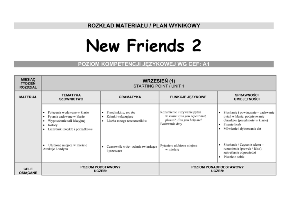 ROZKŁAD MATERIAŁU / PLAN WYNIKOWY