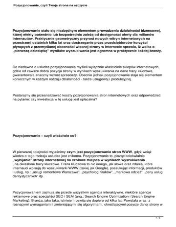 gwarantowała znaczny wzrost sprzedaży. Obecnie jednak pozycjonowanie staje się elementem