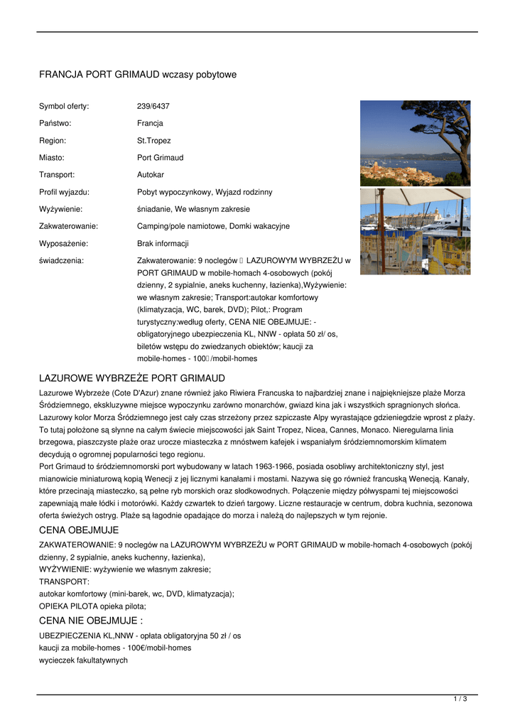 lazurowe wybrzeże port grimaud cena obejmuje cena