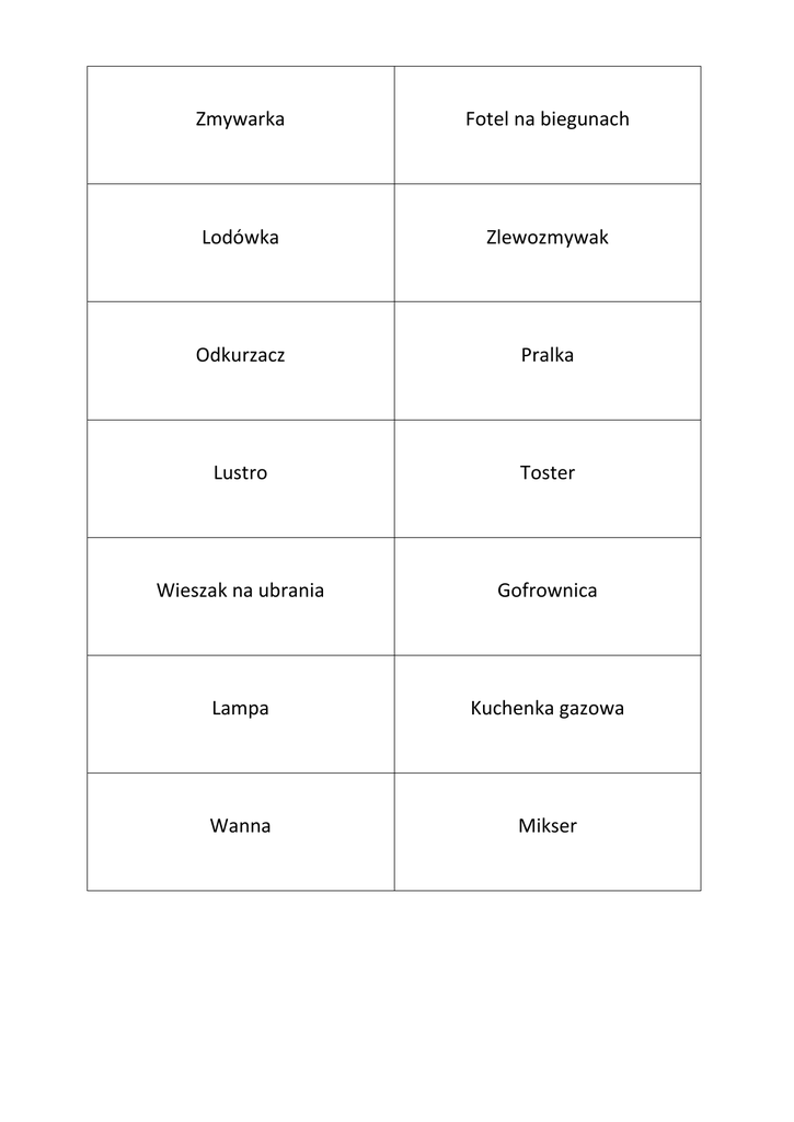 Zmywarka Fotel na biegunach Lodówka Zlewozmywak Odkurzacz Pralka Lustro Toster Wieszak na ubrania Gofrownica Lampa Kuchenka gazowa Wanna Mikser