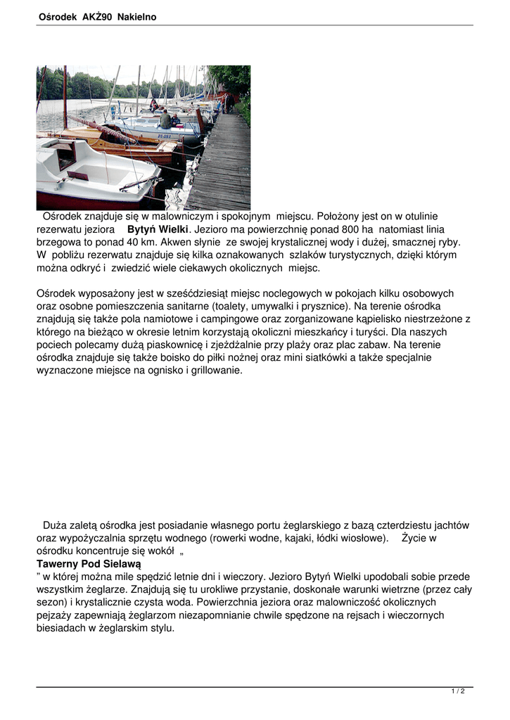 Duża zaletą ośrodka jest posiadanie własnego portu żeglarskiego z bazą czterdziestu jachtów