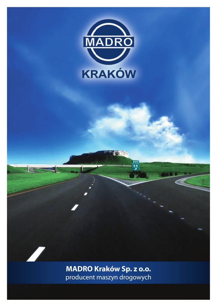 MADRO Kraków Sp. z o.o. producent maszyn drogowych Madro Kraków Sp. z o.o. należy do Grupy Sobiesław Zasada S.A. Spółka specjalizuje się w produkcji maszyn drogowych od 1948r. Po zmianie lokalizacji w 2007r. z Krakowa na Niepołomice koło Krakowa, Spółka przeszła kompletną reorganizację i została dostosowana do obecnych wymagań rynku. Zakupiono nowe maszyny i urządzenia, wdrożono na potrzeby produkcji nową technologię śrutowania i malowania konstrukcji stalowych. Mając na uwadze wymagania i potrzeby klientów oferujemy obecnie nowoczesne, ekologiczne wytwórnie mieszanek mineralnobitumicznych o wydajności od 30 do 240t/h. Aby zapewnić najnowsze rozwiązania techniczno-technologiczne dla wytwórni o wydajności od 160 do 240t/h podjęliśmy współpracę z fińskim producentem wytwórni firmą Amomatic OY. Oprócz kompletnych wytwórni wykonujemy: ! pionowe zbiorniki magazynowe na bitum, ! zbiorniki na emulsję, ! instalacje recyklingu, ! instalacje dozowania dodatków, ! recyklery do przerobu zerwanych nawierzchni asfaltowych, ! linie do suszenia i suszarnie bębnowe do różnych materiałów, ! modernizacje pracujących wytwórni mas bitumicznych, ! szeroki asortyment części zamiennych, ! konstrukcje stalowe wg dokumentacji klienta, ! linie dozowania destruktów. Jesteśmy na rynku polskim wiodącym producentem maszyn drogowych. Posiadamy wysoko wykwalifikowaną kadrę inżynieryjno - techniczną, własne biuro konstrukcyjne, które wykonuje projekty pod wymagania klienta. Naczelnym naszym celem jest zadowolenie klienta, dlatego wyroby nasze podlegają kontroli na każdym etapie produkcyjnym oraz montowane są przez nasz profesjonalny serwis. Zapewniamy również serwis gwarancyjny i pogwarancyjny, który w ciągu 48 godz. reaguje na uwagi klienta. Zabezpieczamy przez wiele lat części zamienne do naszych urządzeń. Spółka posiada System Zarządzania Jakością, zgodny z wymaganiami normy EN ISO 9001: 2008. KRAKÓW MADRO Kraków Sp. z o.o. producent maszyn drogowych Wytwórnie Wytwórnie mieszanek mineralno bitumicznych to nowoczesne ciągi technologiczne o zwartej konstrukcji i modułowej budowie wieży mieszalniczej. Pozwala to na szybki i niezależny ich montaż na placu budowy. Bezpieczny, przestrzenny układ schodów i podestów umożliwia łatwy dostęp do wszystkich elementów podczas obsługi. Wyposażone są w bardzo skuteczne, odpowiadające wszelkim wymogom ochrony środowiska urządzenia odpylające, komputerowe systemy sterowania oraz mechanizmy wykonawcze oparte na podzespołach cenionych firm. Suszarki Spółka Madro Kraków specjalizuje się w produkcji suszarek do wytwórni mas bitumicznych i specjalistycznych do suszenia różnych materiałów. Odpowiednie dobranie wewnętrznej zabudowy bębna suszarki oraz palnika decyduje o wydajności i optymalnym wykorzystaniu ciepła. Wykonujemy suszarki pod wymagania klienta do suszenia: ! ! ! ! piasku (jedno, dwu lub trzy płaszczowej) i kruszyw, bentonitu, gipsu, kredy, materiałów odpadowych, innych materiałów. Filtr workowy Oferujemy suche kompaktowe filtry do wytwórni mieszanek mineralnobitumicznych. W zwartej stalowej obudowie umieszczony jest separator frakcji piaskowych oraz filtr oczyszczania dokładnego z tkaninowym wkładem filtracyjnym. Każda sekcja posiada w dolnej części komorę magazynową na wytrącony pył, zamkniętą klapą grawitacyjną. Przy filtrach powyżej 150m2 powierzchni filtracyjnej wbudowany jest w komorze magazynowej przenośnik ślimakowy do wydalania pyłu drobnego. Oczyszczone gazy poprzez specjalny przewód są zasysane przez wentylator wyciągowy (którego siła ssania jest regulowana falownikiem) i wydalana przez komin do atmosfery. Pyły zgromadzone w komorach magazynowych filtra mogą być wykorzystane w procesie produkcji asfaltu lub utylizowane. MADRO Kraków Sp. z o.o. producent maszyn drogowych Zbiorniki na bitum Wdrożyliśmy do produkcji pionowe zbiorniki do magazynowania bitumu, ogrzewane elektrycznie, różnej pojemności. System grzewczy jest trzech sekwencyjny obejmujący ogrzewanie zasadnicze, technologiczne, rozmrażające. Zbiorniki mogą być z mieszadłem lub bez, w zależności od potrzeb klienta. Recykler MAGMA MAGMA służy do powtórnego przerobu zerwanych nawierzchni bitumicznych, takich jak złom asfaltowy czy odpady po frezowaniu nawierzchni asfaltowych. Doskonale sprawdza się przy pokrywaniu masą asfaltową: ! Podjazdów, przejść dla pieszych, chodników, alejek; ! Przy naprawach dziur, ubytków, przekopów, przełomów. MADRO KRAKÓW Sp. z o.o. znalazła się w gronie laureatów XII edycji rankingu Gazele Biznesu organizowanego przez redakcję dziennika „Puls Biznesu”. o tni a Maja Na Gro cza Grunwaldzka zo ws k a Cmenta rna ska a lick Wie Jagielloń as na Pł Niepołomice Ro b Wieliczka e-mail: [email protected] www.madro.pl zn a 3 Fab ryc Mły ńsk Kraków Og rod ow a na na Wod MADRO KRAKÓW Sp. z o. o. 32-005 Niepołomice, ul. Fabryczna 6 tel.: +48 12 411-60-66 tel./fax: +48 12 411-41-45 fax: +48 12 411-85-02 k Pię Dro ga K Bochnia Bo róle wsk My śliw a ska c MADRO Kraków Sp. z o.o. producent maszyn drogowych