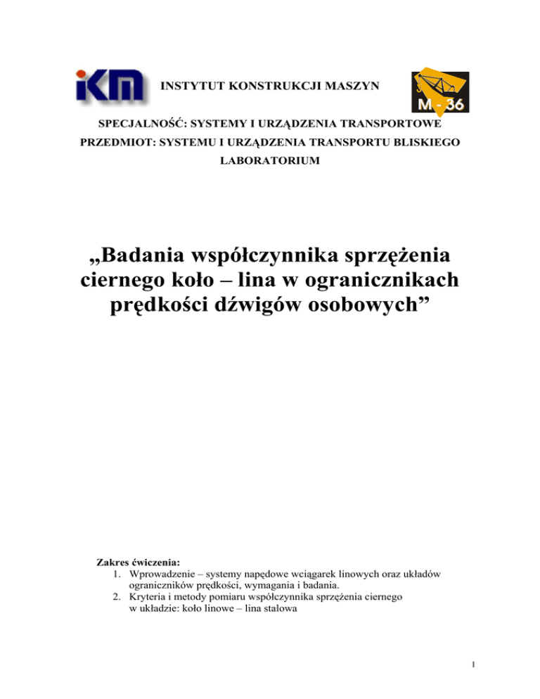 „Badania współczynnika sprzężenia ciernego koło – lina w