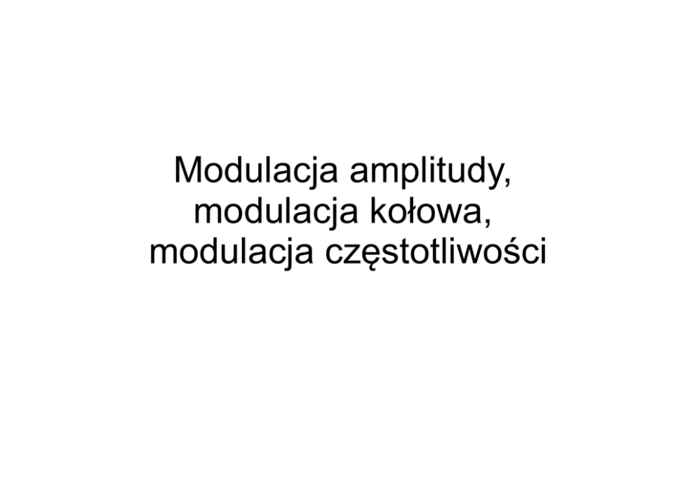 Modulacja amplitudy, modulacja kołowa, modulacja częstotliwości Modulacja Modulacja Amplitudy ● Zmiana amplitudy fali nośnej Fala nośna: Sygnal modulający: Sygnal po modulacji: y(t) c(t) m(t) ● Częstotliwość modulująca < 20 Hz => efekt tremolo ● Częstotliwość modulująca > 20 Hz => AM Modulacja Kołowa Modulacja fazowa Fala nośna: Sygnal modulający: Sygnal po modulacji: Modulacja Częstotliwości ● Zmiana częstotliwości fali nośnej Fala nośna: Sygnał modulujący: Sygnał po modulacji: c(t ) = C s in( Ω t ) m(t ) = M s in( ω t + P ) y (t ) = C s in( Ω t + k ⋅ M s in( ω t + P ) t ) ● Częstotliwość modulująca < 20 Hz => efekt wibrato ● Częstotliwość modulująca > 20 Hz => modyfikacja widma sygnalu Indeks modulacji Widmo Przykład sygnału ● Częstotliwość nośna 220 Hz, modulująca 440 Hz, zmienny indeks modulacji (β). Funkcje Bessela(J) Zakres ujemny Wiemy, że: Np. dla f=100 Hz, A=0,3 Obliczanie widma syntetycznego Aby obliczyć widmo syntetyczne, należy: Współczynnik modulacji N1, N2 należą do liczb naturalnych Algorytm ● Simple FM Złożony z modulatora i generatora nośnej ● M-modulator, C-generator nośnej Równolegle połączenie modulatorów Szeregowe połączenie modulatorów Sprzężenie zwrotne